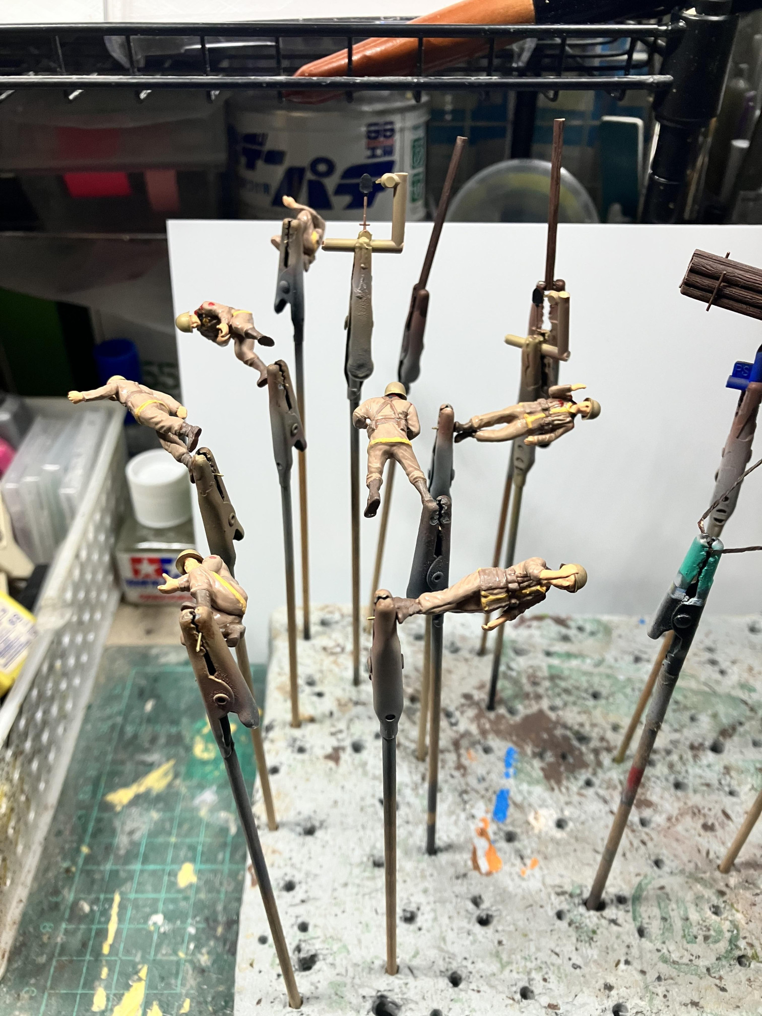 蒼き鷹 2026.01/14更新 ダグイン制作中 32 18 いいねしたモデラー(18) 2 作品を共有 1/48の兵士と小物類を塗装しました(//∇//) 兵士は頭と腕の角度を変えたりして、場面に合わせたポーズにしました あとはベースを進めていき、土嚢を置こうかなぁっと思い樹脂粘土を買ってきました タミヤの土嚢セットでは全部同じ形だから融通が効かないから試しに作ってみます∩^ω^∩ 制作中 コメント コメントをして応援しよう コメントにはログインが必要です ますらお 8時間前 わくわくしますねぇー土台ができたからどんなドラマが観れるか(zaku-kao2) 蒼き鷹 3時間前 コメントありがとうございます♪ イメージ通りになってくれれば良いなぁって思いながら進めています ジオラマのアドバイスで配置の参考にと教えてもらった写真から自分なりのイメージに変え、あとは腕次第になっていきますψ(`∇´)ψ 蒼き鷹 主に旧キットとHGを作ってます。 改造する際はキットのみでジャンクパーツをなるべく使わずプラ板などで作製します。 Twitterの方もよろしくお願いします🥺 蒼き鷹さんがお薦めする作品 1/48 オリジン版 マゼラ・アタック(欧州戦線仕様) 1/100 サンダーボルト版 ザクタンク ドム・レゾナンス サンダーボルト版 ガンタンク 17 1/48 61式戦車5型 M61A5 MBT 年に1度はタンク系を作らなければならない性分になってしまった… 16 履帯だけ見て〜 ☆〜(ゝ。∂) 1/35戦車を組んでて、ふと思いました 履帯をHGガンタンク… 17 MG RMS-119 アイザック(ユニコーン版) 宇宙世紀で長期に渡って最も活躍されたであろうアイザックをMG… 17 1/144 旧キット Gファイター 合体機能をオミットしつつ形状変更したGファイターを製作しまし… 蒼き鷹さんのページ この作品をお薦め作品に設定する Please login to update your profile! Please login to update your profile! Please login to update your profile! Please login to update your profile!
