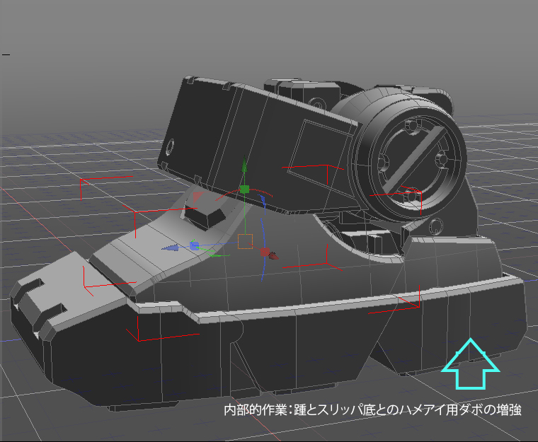 見えない改良1:踵とスリッパ底の篏合部を強固な物に修正。