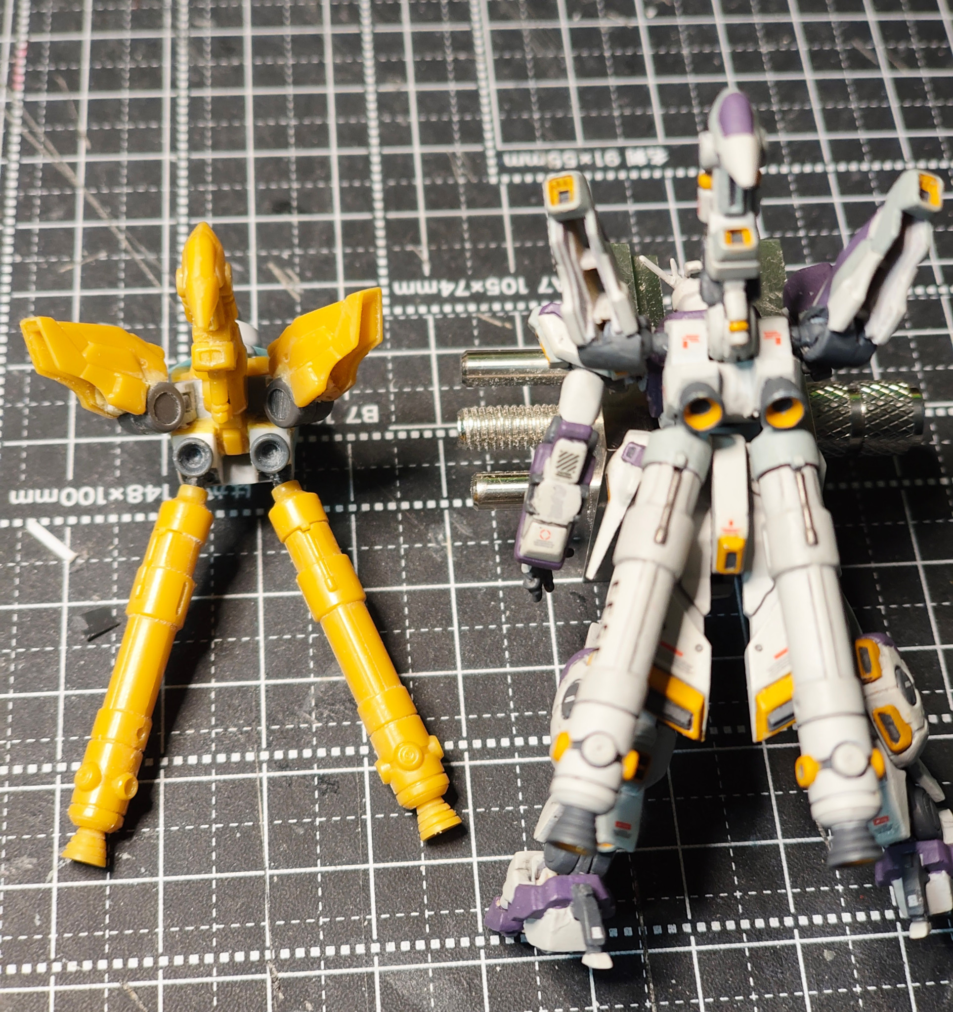 真ん中の鳥スラスターは前回とほぼ同じ。スラスターの受けを背中から切り離す。