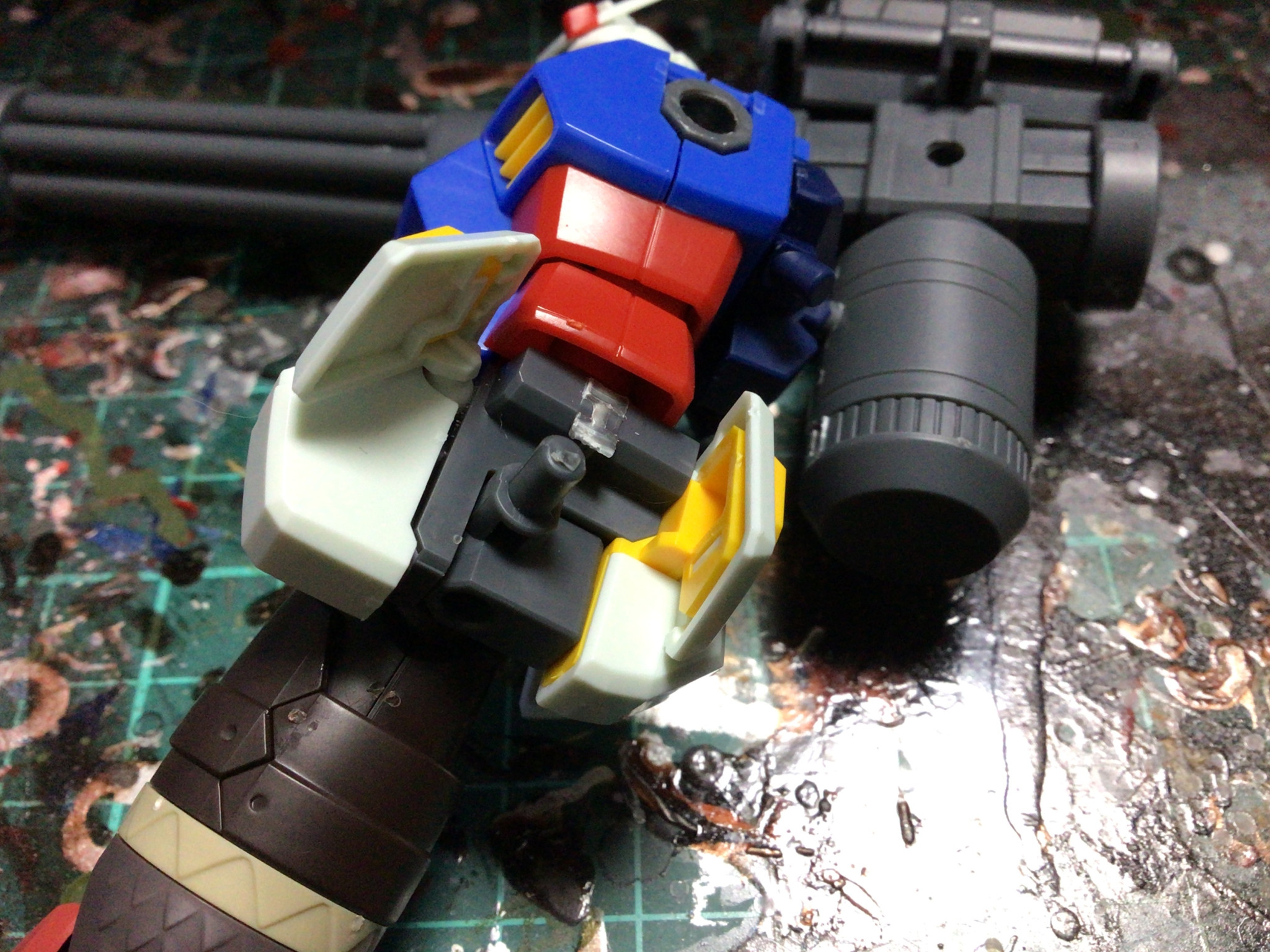 具体的な改造内容としてはサイドスカートを撤去し(画像は表面処理前のもの)脚部を30MF ドラゴニアナイトの脚部に変更脚部の受け軸が同じく3mmだったので無改造で変更できました