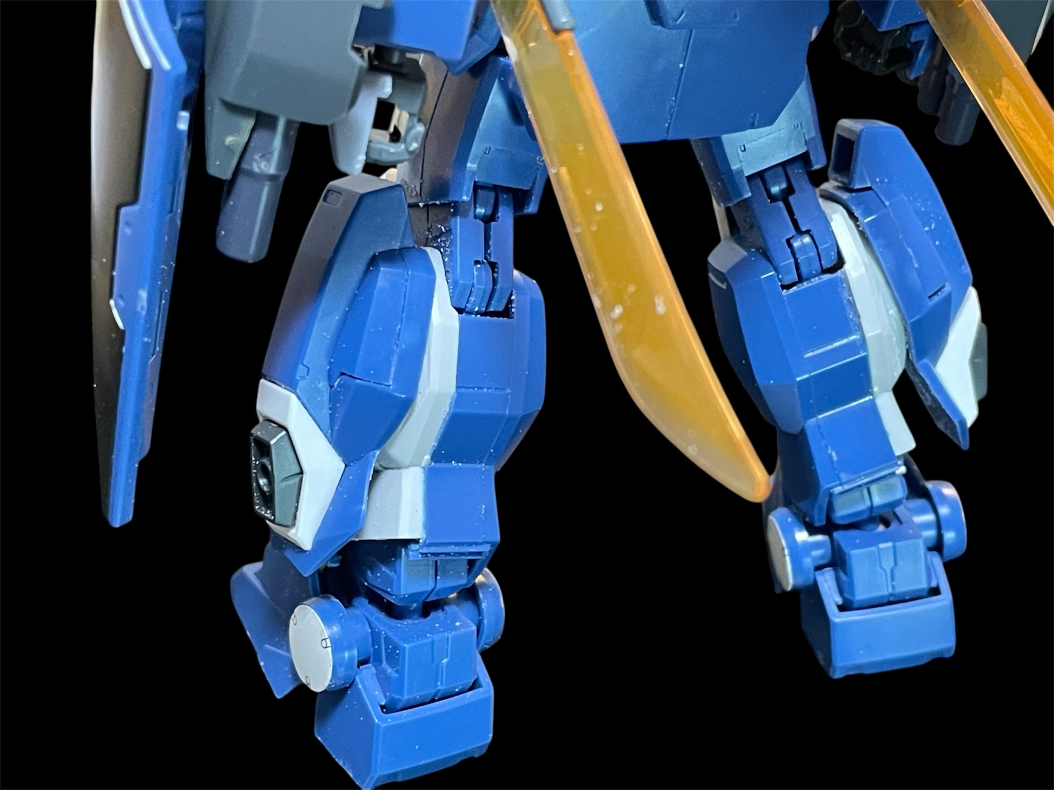 脚部のスラスターを別パーツ化するために、陸戦型ガンダムの脚部を移植し、その上から元の脚部をかぶせる形で表現しました。
