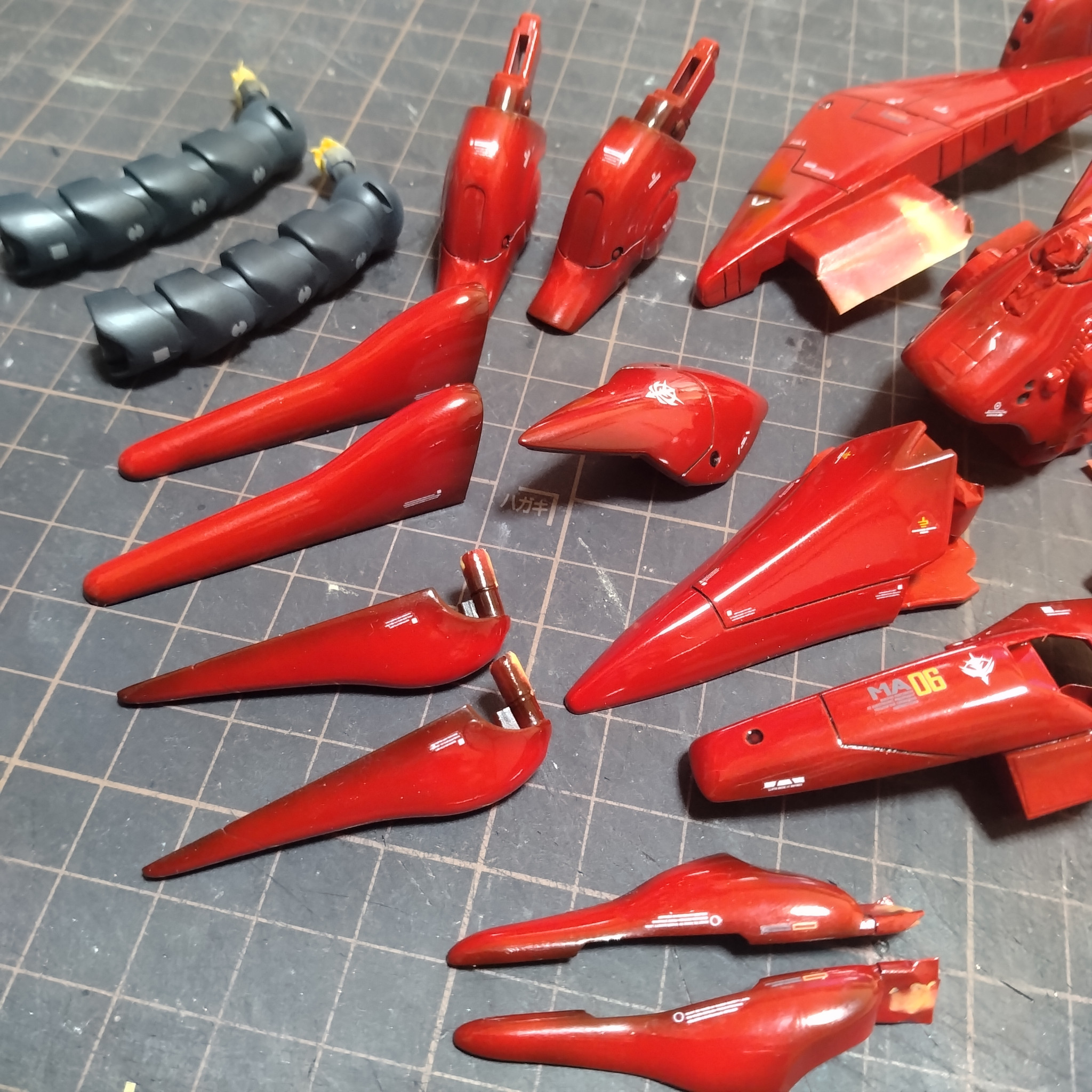 ライトニング2 2026.01/26更新 HGヴァル・ヴァロ鏡面仕上げ塗装、製作 64 19 いいねしたモデラー(19) 8 作品を共有 取り敢えずはデカール貼り終えました!😄ちょっとした筆塗りも同時にやりましたが、動力パイプやマスキングしてる箇所は艶消しにしたいので!怖いですが鏡面仕上げが終わってから最後に塗ろうと思います!😀さてここまでは普通の楽な道のりでしたが!次からはテーマでもある鏡面仕上げに取り掛かって行きますので!ちょっと完成までの道が険しくなります!😄次からはクリア吹かして行きます!最初のクリアは2回か3回吹かす予定です!😀取り敢えず!ゆっくりしようと思います!😄 制作中 コメント コメントをして応援しよう コメントにはログインが必要です 与一 6時間前 もう綺麗ですね🩵 楽しみです🥰💕👍✨ しかもヴァル・ヴァロ🤩🌟🌟 ライトニング2 6時間前 有難うです!😄ここまではまだ楽なんですが!ここからがスッゴい面倒なんです!😄テーマに鏡面と言った以上!ここからが頑張りどころです!😀 ニャア軍曹 14時間前 すでにもうキレイですね🤤 あっしもしっかり乾かしたらすぐに続きます! 苦行が始まるというのに…なぜかワクワクしてしまうのはやはりドMだからですね😹笑 ライトニング2 7時間前 またまた爆睡してしまいました!😅まだクリア吹かしてないです!😄予定では日中に吹かして乾燥させて3回繰り返す予定と考えていたのですが!😄😄ニャア軍曹さんも何かを制作してるのですか?😄ちなみに私は!え、え、Mじゃないんだからね!😆😆 ニャア軍曹 7時間前 隠せてないですよ、動揺っ🤣笑 はい、実は私もこれから鏡面苦行に入る準備をしております(zaku-kao8)ただ、下地はシルバー⇒クリアカラー⇒クリアコート⇒水研ぎ⇒コンパウンドと、若干ライトニングさんと工程が違うかもしれませんが、久々にやろうと😸 いまからドMの血潮が滾っております✨笑 ライトニング2 7時間前 キャンディですね!😄ホントは鏡面を活かすならキャンディ塗装が一番だと思うんです!😄私はマット以外はなかなかキャンディ塗装をしないので!😄楽しんでMって下さい!😄😄😄完成楽しみにしてますので!😄 ニャア軍曹 7時間前 この方法はキャンディ塗装というのですね💧すみません、違いも分からず言っておりました(;´∀`)💫 はりきってMして参りますっ(`・ω・´)ゞ✨笑 ライトニング2 6時間前 Mを頑張って下さいって言うのも!ちょい変ですが!😄😄頑張って下さい!私は先程からクリア吹かしてます!😀 ライトニング2 GUNSTAに多いファースト勢です!😄幼少期よりプラモデル作りが好きでリアルロボットの前世紀、ガンダム、ボトムズ、エルガイム、ファイブスター、ザブングル、ダンバイン、ダグラム、マクロス、その他、ロボ以外でもキャプテンハーロックのアルカディア号や宇宙戦艦ヤマトなどなど他にも色々と有りますが!特にガンプラは途中、間は空きましたが、ずっと作り続けてます!😄プラモデルなら例え美プラだろうと塗装表現を特訓する為に作ったりもします!😄😄お時間がありましたら見てやって下さいませ!😀ちなみにXもちょい触ってますが、面倒くさくて余り真面目にやってないので気にしないで良いです!😄😄私はGUNSTAだけで良いと思ってますので!たまにコメントを見逃してコメント返し出来てない事があると思いますが!定期的に見直して見つけた時にコメント返したりする事があるのでその時は申し訳御座いません!🙏 ライトニング2さんがお薦めする作品 MGリック・ディアス MGゲルググVer2.0 RGジオング HG重力戦線ザク地上戦MSイグル2 9 MG、GP01ゼフィランサス 次の製作ストーリーをアップしようと何を作るか迷っていたのです… 9 MGザクキャノンユニコーンVer MGザクキャノンユニコーンVerです!😀 9 MGサイサリス MGサイサリスです!😀 2 デジラマ背景HGゲルググヴェルテクス デジラマ背景でHGゲルググヴェルテクスです!😀 ライトニング2さんのページ この作品をお薦め作品に設定する Please login to update your profile! Please login to update your profile! Please login to update your profile! Please login to update your profile!