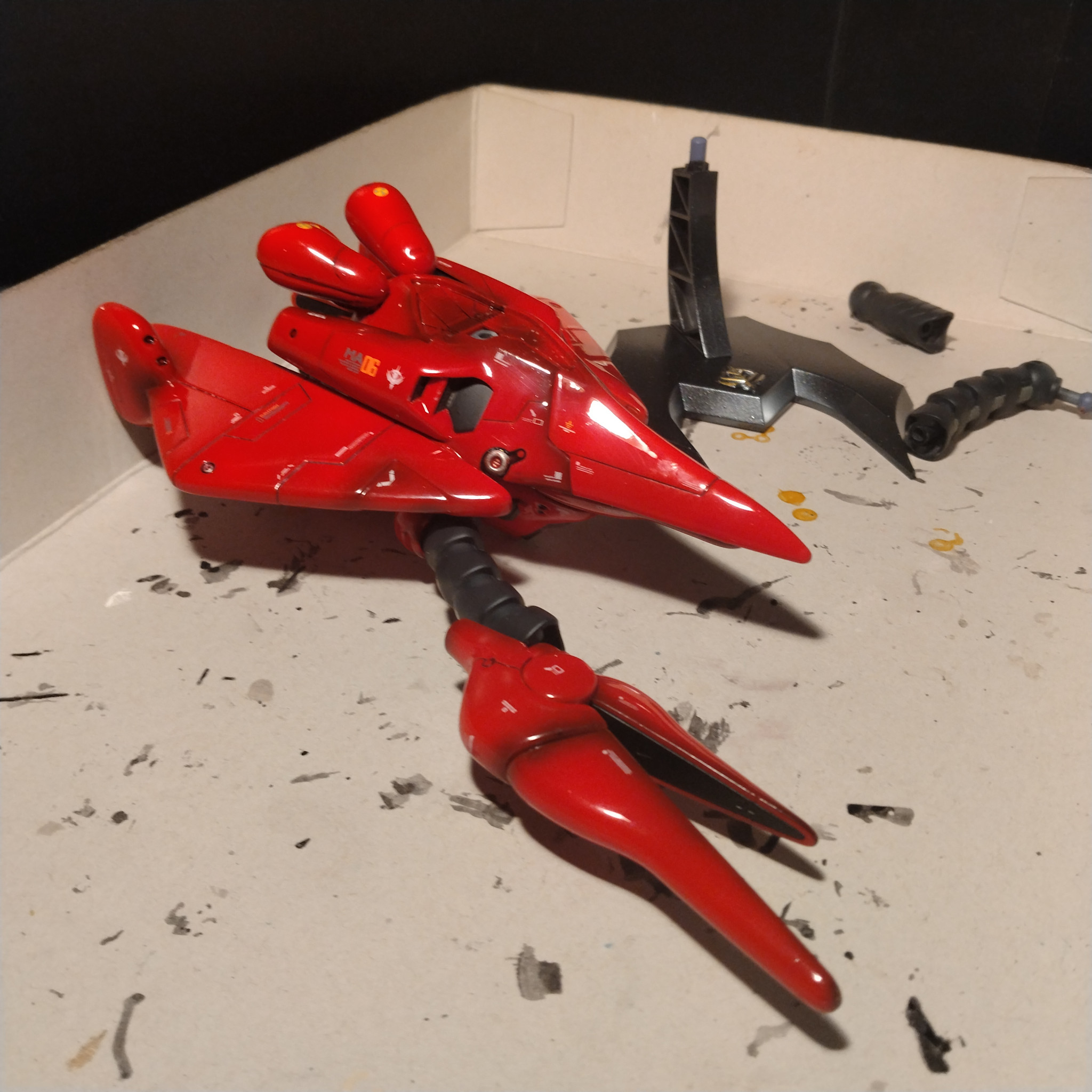 すみません!🙏制作ストーリーは前回で終了と言いましたが、ちょっと予定が変わって少し伸びました!😅まぁ取り敢えずはあらかた組み上がったのでチラッとだけアップします!😄でもまだ完成では無いです!モノアイを色々考えたのですが!小さすぎて手持ちの一番小さいものでも収まらなかったので!結局は塗りました!本当は反射系のモノアイをピタッと瞬間で付ける予定でした!無ので乾燥中です!それとまだワックスかけてないので!組み立ての時に指紋が付きまくってます!😄なので終わりではありません!😄この制作ストーリーの投稿がホントの終了になります!🙏次回は完成投稿しますので!お暇がありましたら観覧宜しくお願いします!😀
