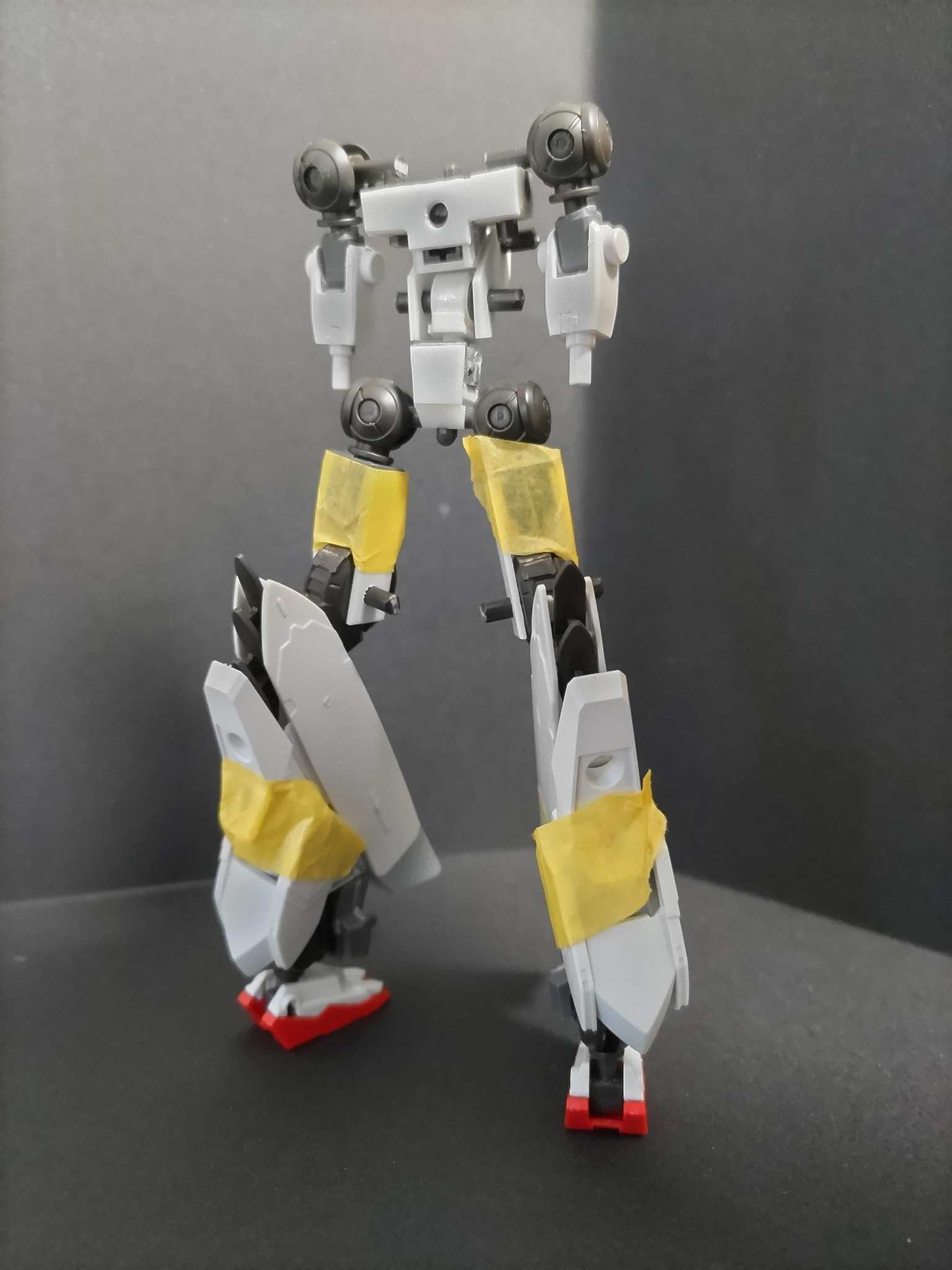 ガンダム顔にするかセンサー風にするか迷ってる。デザイン的には大きいほうがいいが、変形後の収納が大変。
