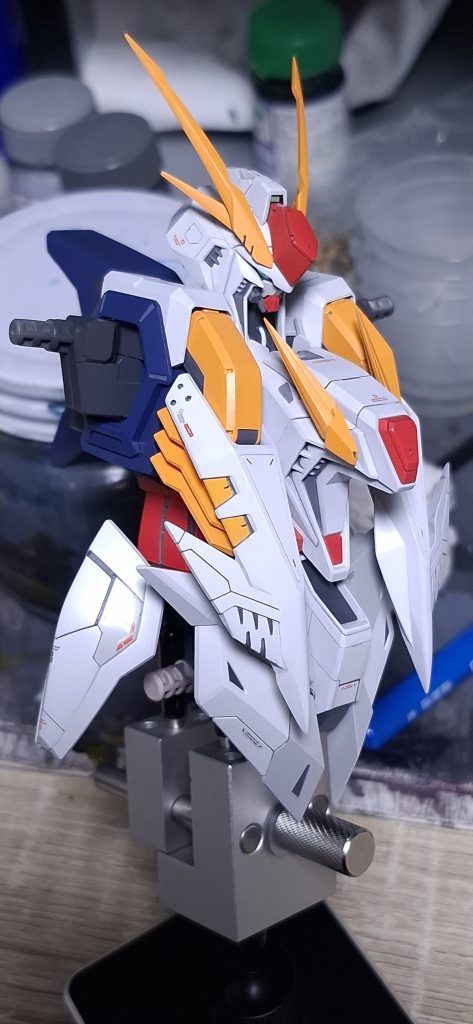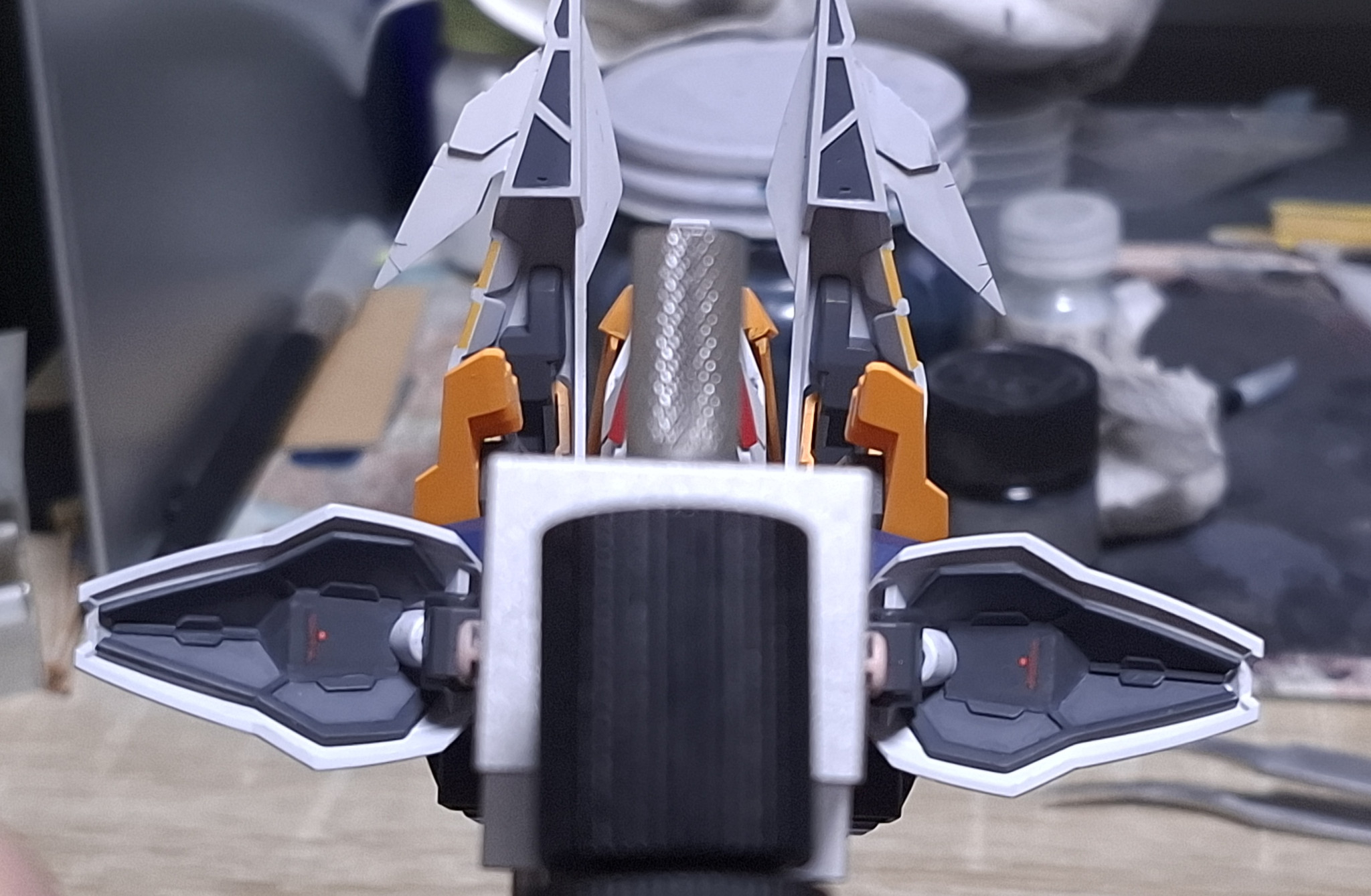 胸部のアンテナの角度を胴側に寝かせたおかげでコクピットサイドのカバーを大きく跳ね上げられる様になってます。フライトフォームでのスタイルに若干でもいい変化がつくといいんですけど🤔