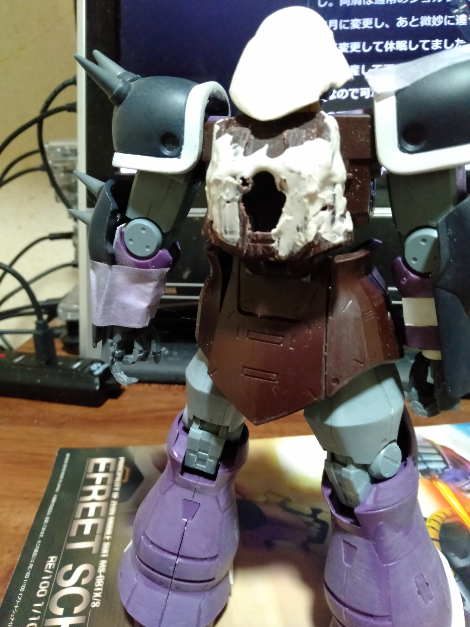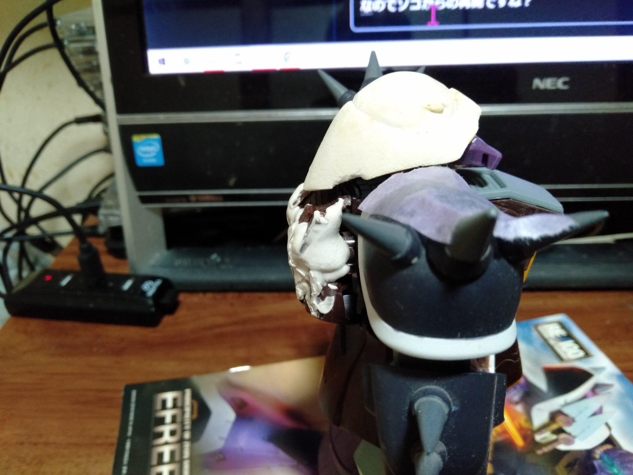数年前に途中で止めてた、イフリートへの改造を再開します。頭部のカバーから創り替えています、キットの頭部は”大河原デザイン”では無く、残念な”NAOKI”のクソアレンジなので、気に入らないし。両肩は通常のショルダーカバーへ変更、ハンドカバーもスパイク月に変更し、あと微妙に違うフロントスカートも形状をプラバンにて変更して休眠してました。理由はキットの頭部カバーを型取りして量産してて、数個製作して飽きてました(笑)。なので続きからなので可なり開始は楽ですが、まだランドセルの形状を変更途中なのでソコからの再開ですね?