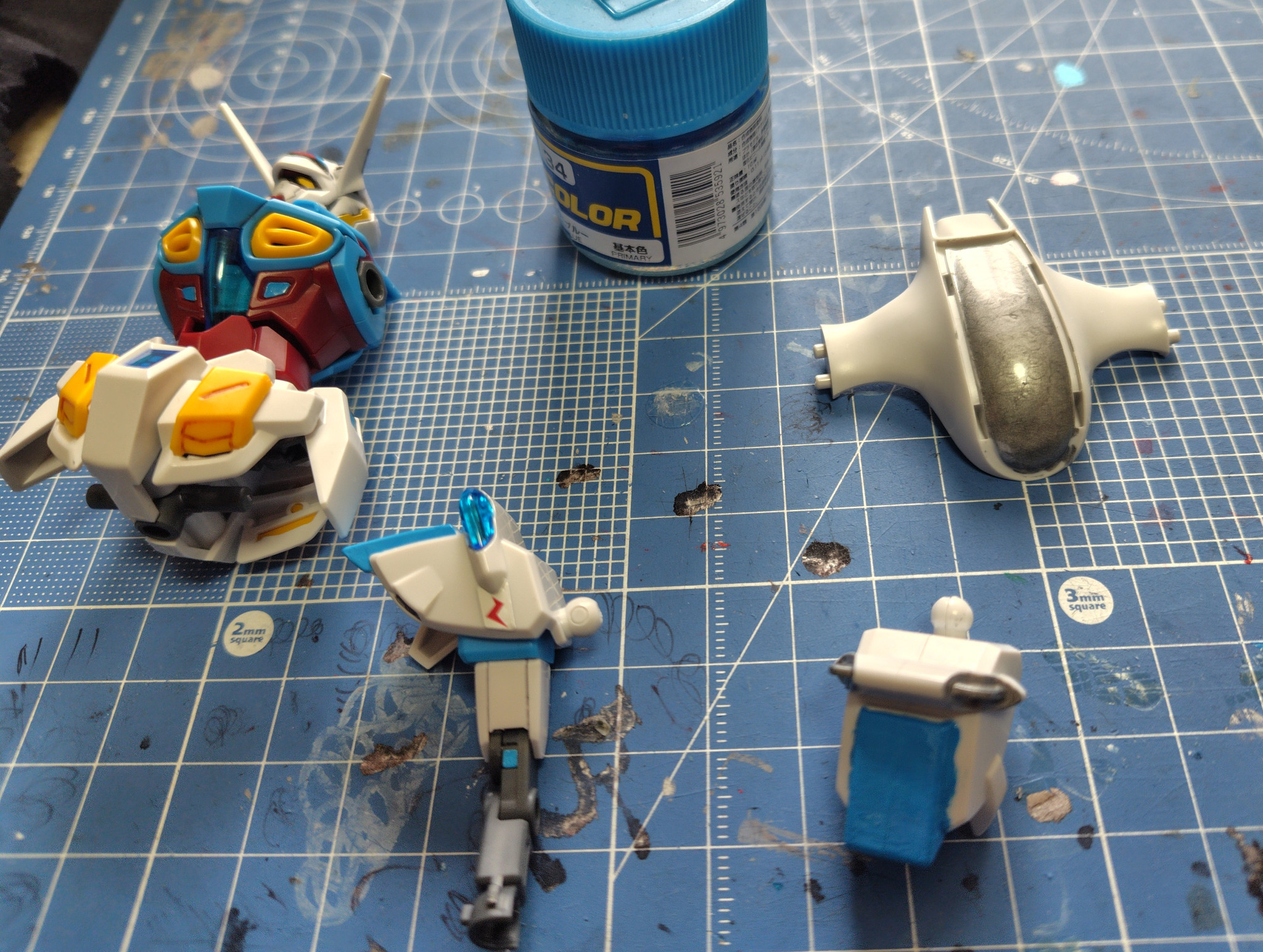 ガンダムXディバイダーを素組、少し塗って作りました。 青の色…