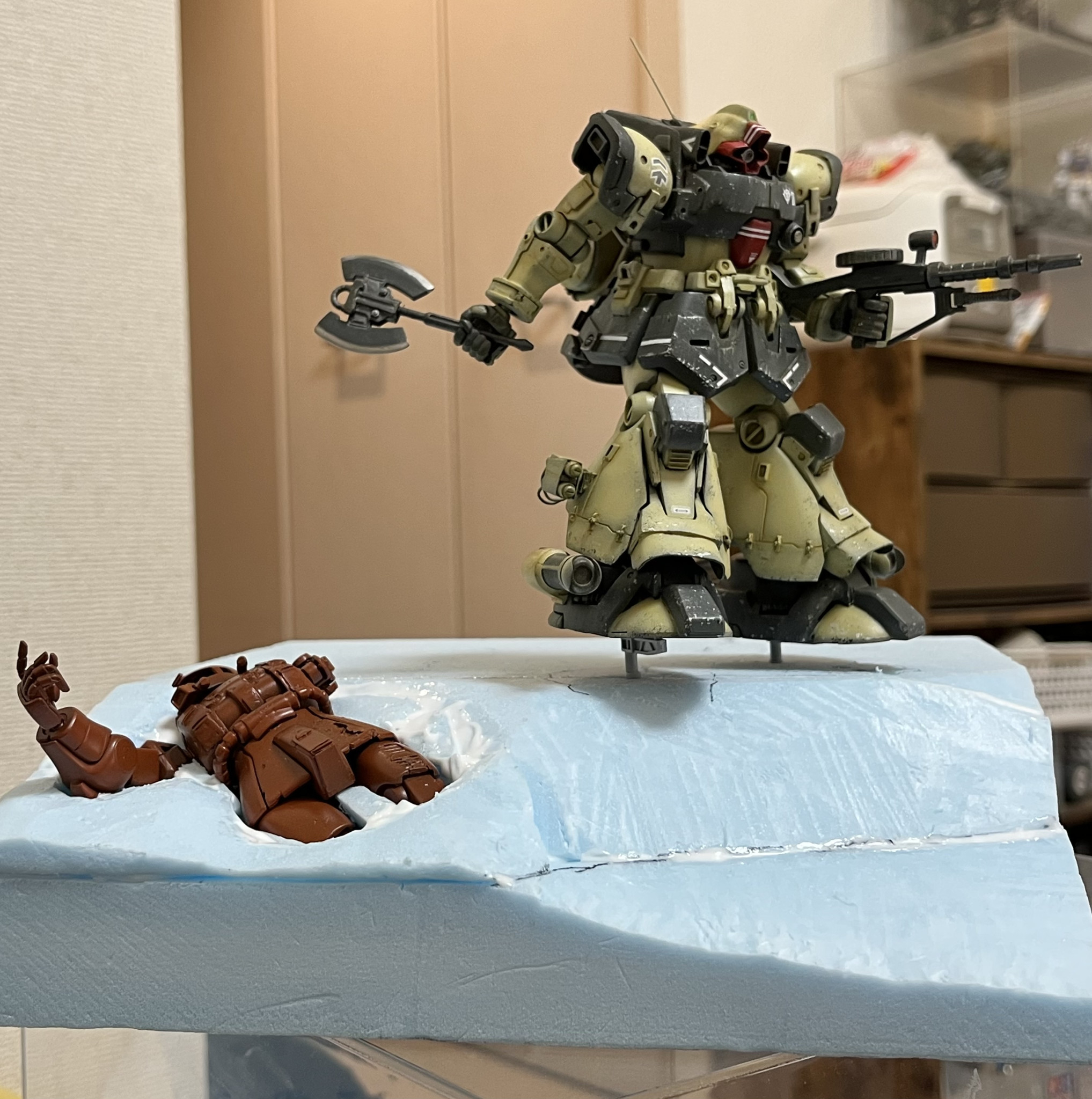 RaMuShizu 2026.02/09更新 《ジオラマ》ドムトローペン 24 18 いいねしたモデラー(18) 1 作品を共有 砂煙を超ーリアルに仕上げる事が出来たら、超ーカッコいいジオラマになりそうです😆砂煙を巻き上げ砂丘をジャンプする寸前のトローペン!うんうん、浮いてます!飛んでます!朽ちたザクも良いアクセントになりそうです。願わくばザクの手前にラクダのキャラバン隊を横切らせたい😆ラクダ🐪〜どこ〜! 制作中 コメント コメントをして応援しよう コメントにはログインが必要です cinnamon-1 7時間前 砂漠を爆走するドム、楽しみです👍 RaMuShizu ガンダムは一年戦争以外はあまり知らないオッサンです。1年戦争以外のMSは殆ど知らないので話しについて行けない事もしばしば😅。1年戦争🪖をミリタリー的にあしらった物が見るのも作るのも好きです。ミキシングとやらはやった事もなくパテやプラ板を使った古風な改造しかできません。模活の年季は入ってますのでそれなりに見応えのある作品を心掛けて作って行きたいと思います。 17 ドムトローペン〜アーティファクト風/ドワッジ仕立て〜 アーティファクトのトローペンを参考にHGトローペンにドワッジ… 6 「BATTLE OF CALIFORNIA BASE」その後 前作のキャルフォルニア基地で連邦守備隊が壊滅した後の状況です… 6 EXマゼラン&サラミス ソロモン攻略に向けティアンム艦隊と合流すべくルナツーから出撃… 9 「3部作最終回」 なんとか間に合いましたね。 RaMuShizuさんのページ この作品をお薦め作品に設定する Please login to update your profile! Please login to update your profile! Please login to update your profile! Please login to update your profile!