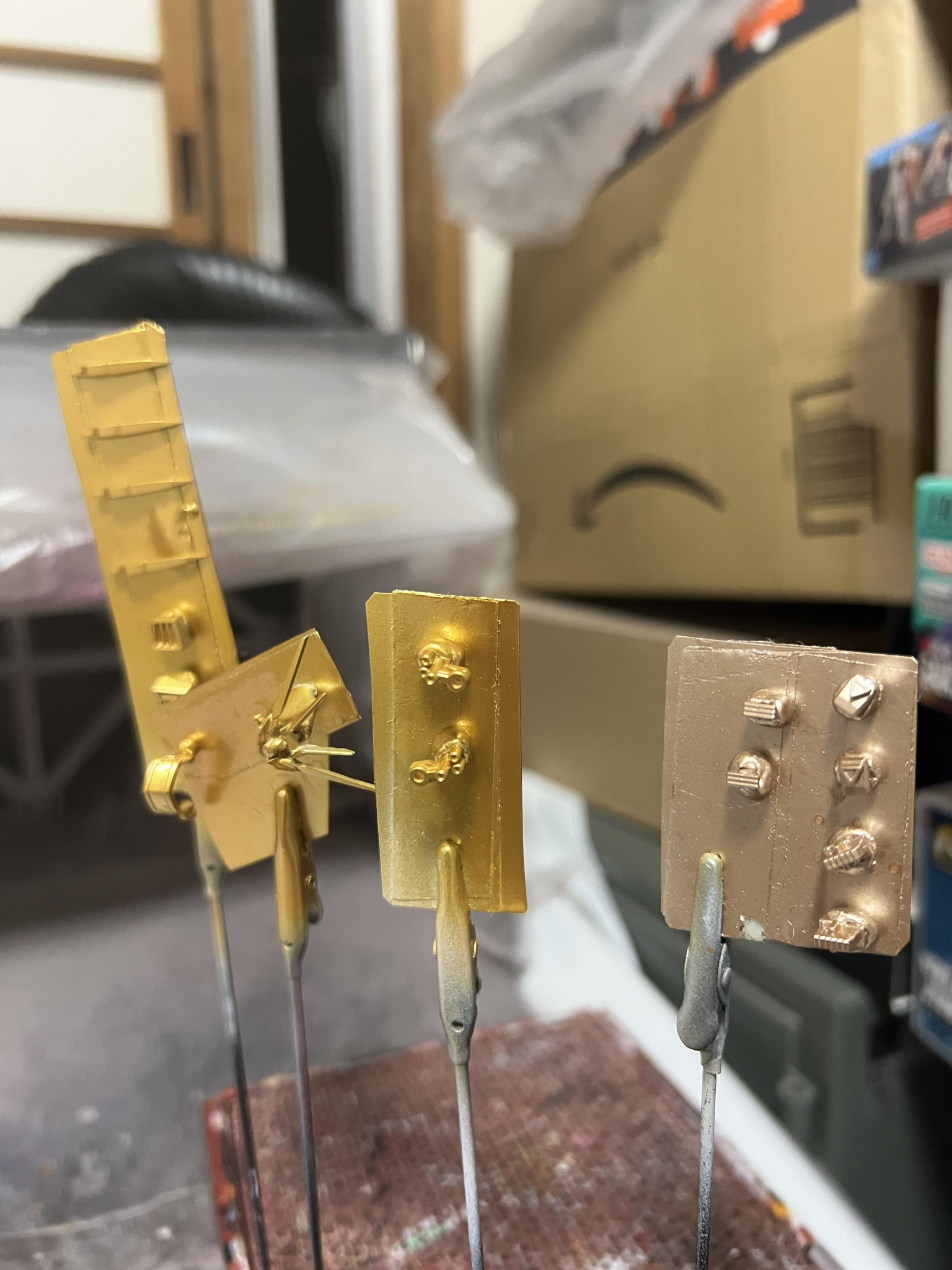 フレーム金色で作りました。情報量多くするため、成形色と塗装に…