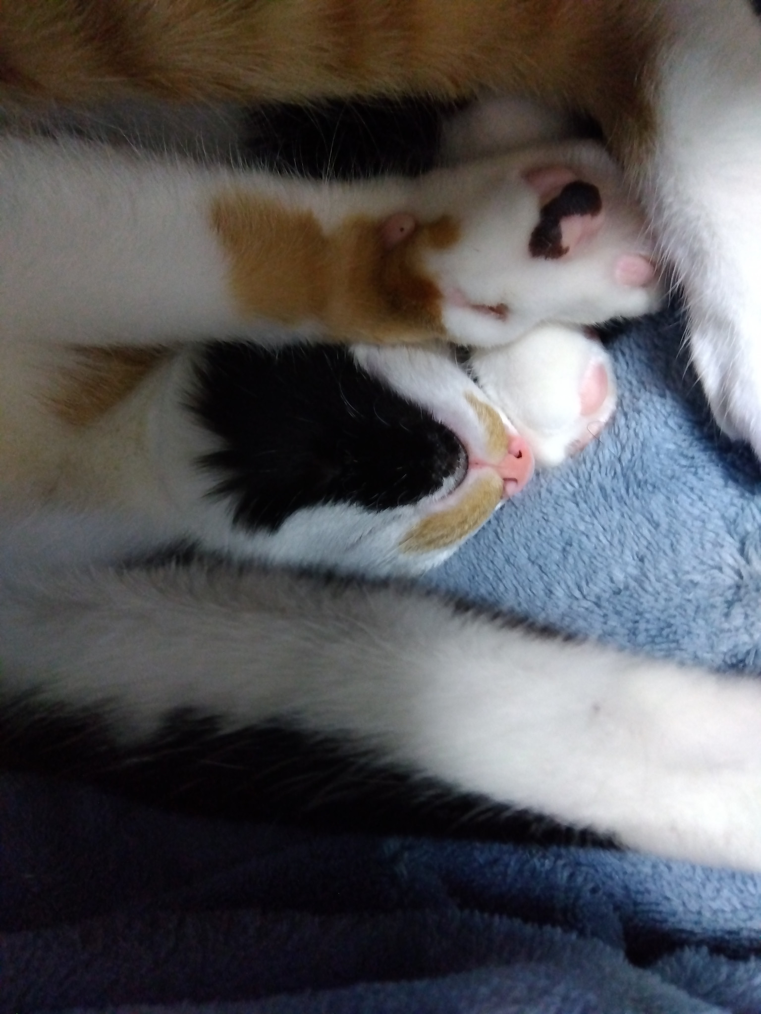 にくきゅーもブチ模様になってる!