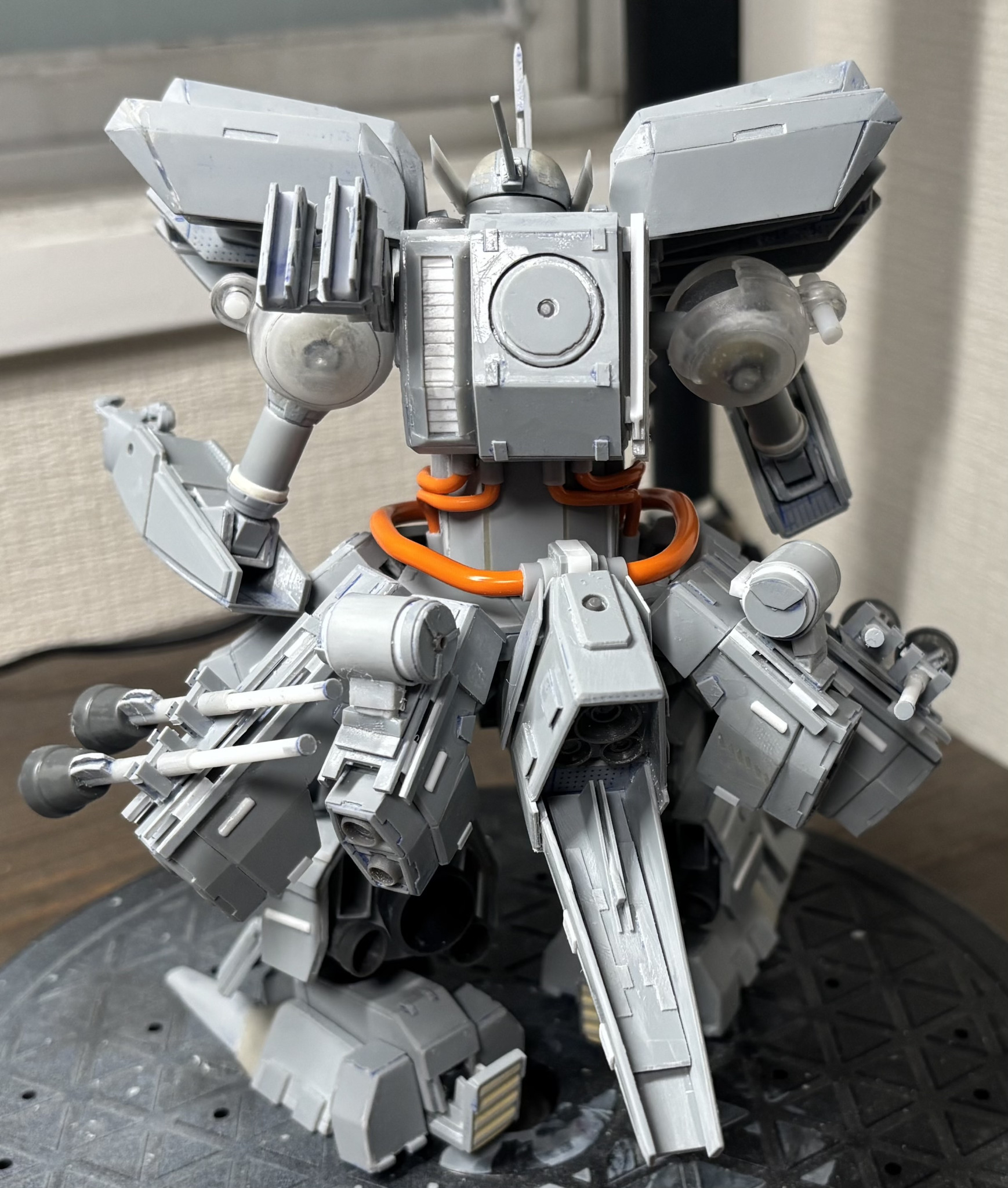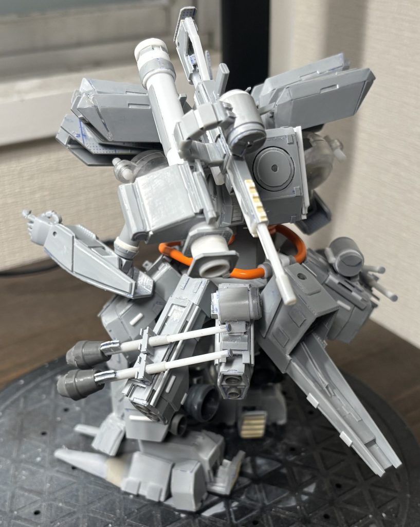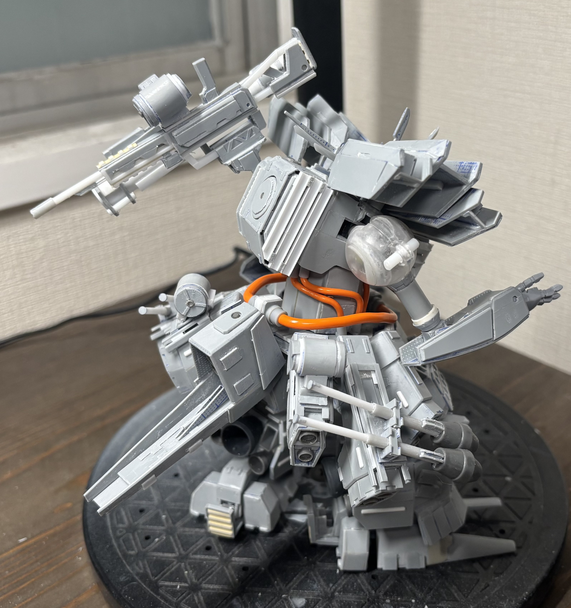 隠し腕も考えたんですが、もう重量がそろそろとんでもなくてバランスが難しい(zaku-kao4)ランディングギア必要かもしれないです最終