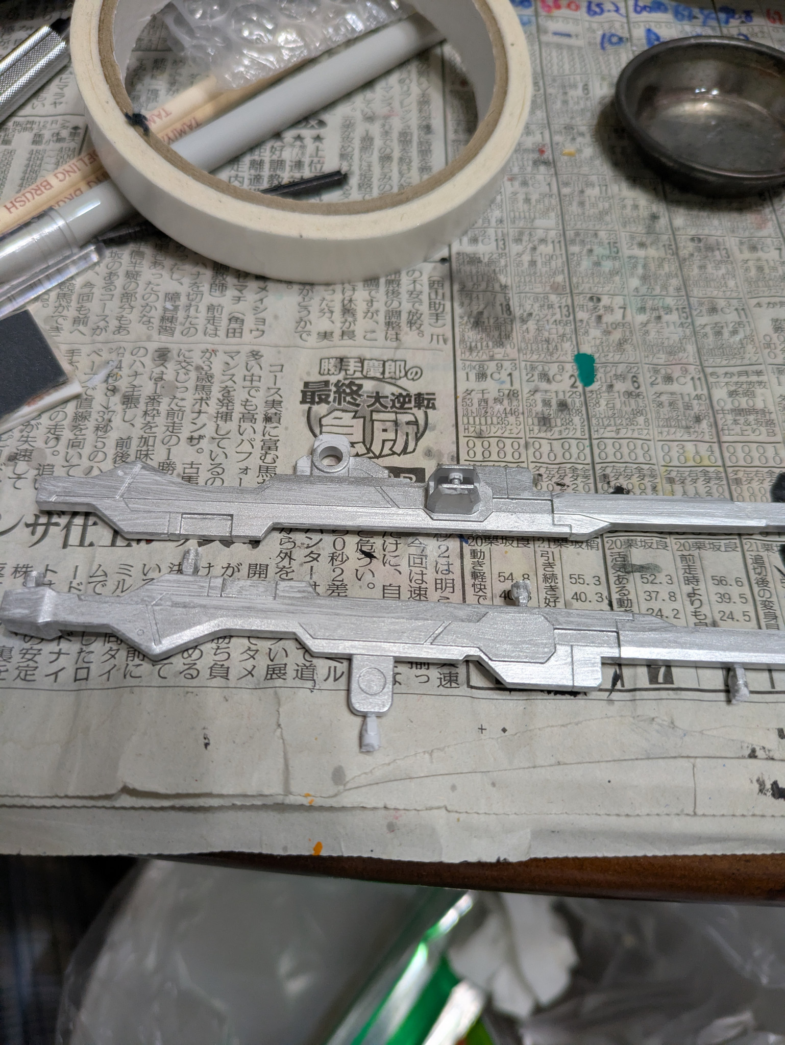 説明書では武器は比較的最後に作ることが多いですが、最後に合わせ目消しが来ると萎えるので、私は複数を一気に作る時などは先に武器から作ったりします。
