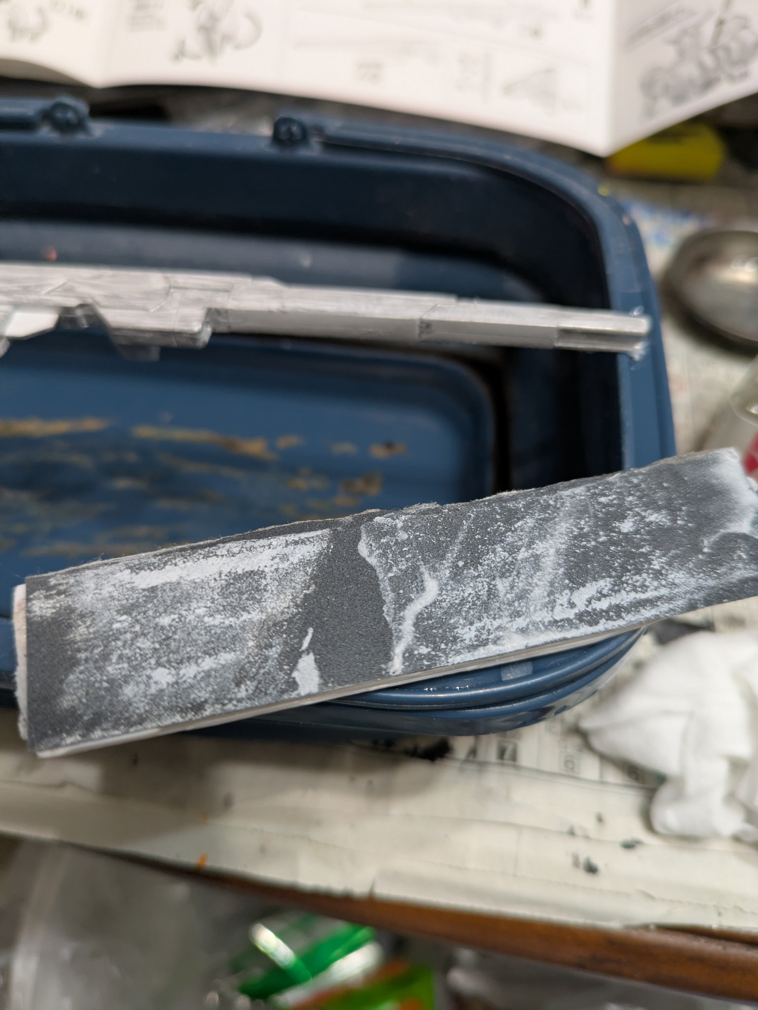 ちなみにヤスリは水研ぎにしています。削りカスがヤスルと結構出ます。塗装の時よりも気を使ったほうがいいと思います。私はガスマスクみたいなのをつけています。間違って付けたままで宅配便を受け取りに行ったらびびられましたw
