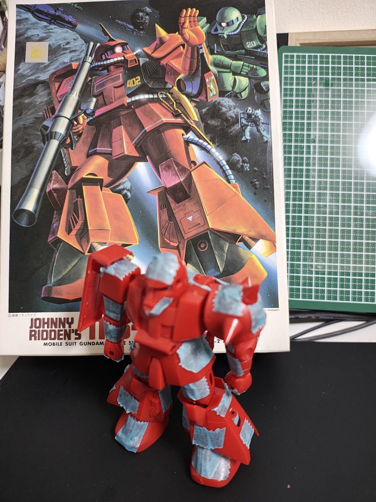 rio.marin… 2026.02/22更新 旧キット ジョニーライデンMS-06R-2 8 6 いいねしたモデラー(6) 1 作品を共有 当時から現行キットまで06R(-2含む)とは御縁がなかったのですが、巡回中に根付け間違い疑惑のこれを見つけたのでお迎え。別のキットと並行して作成中。 箱を開けたら何故か800番の紙ヤスリが1枚入っていて謎。 プロポーションは良いとは言えないが、よく見ると箱絵が忠実にプロポーションを再現していた。箱絵は永久保存版。 それにしても色々突っ込み所が多く、各部どうしたものかと頭を悩ませています。 制作中 旧キット ジョニー・ライデン 高機動型ザク MS06R2 コメント コメントをして応援しよう コメントにはログインが必要です のぴお 2時間前 懐かしいですねぇ~😊 1/144ジョニザク 昔、1/60ジョニザクをお年玉で買いましたねぇ~ rio.marini 偉い人にはわからんのですよ、の人。 10年に一回くらいガンプラブームが来ていて、今回が一番続いている気がします。 清水圭さんのホビージャパンのリガードを見て以来、清水式筆塗り練習生です。 rio.mariniさんがお薦めする作品 グフ フライトタイプ 7 ノイエ・ジール SD ノイエ・ジールです。 昨年末、箱無しでジャンクと並んで… 9 旧キット ゴッグ 旧キット ゴッグです。かわいい。 旧キットのスタイルはいじる… 7 MG MS-06F Ver2.0 MG ザク Ver2.0、2008年3月発売。発売後、すぐ買… 9 ガンダムバルバトス 紅白って勝ち負けを競うもんじゃないと思って参加しています。あ… rio.marin…さんのページ この作品をお薦め作品に設定する Please login to update your profile! Please login to update your profile! Please login to update your profile! Please login to update your profile!