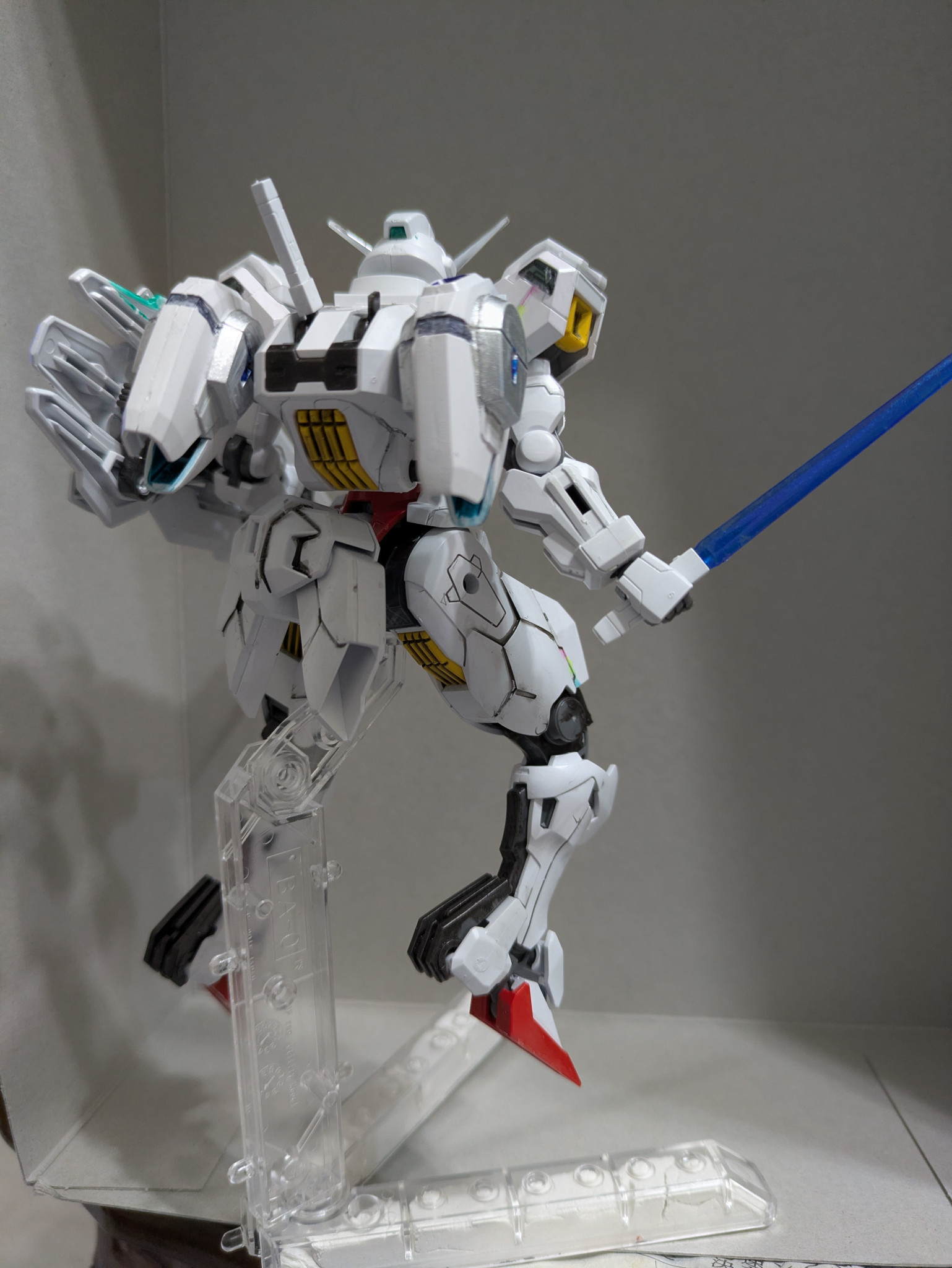 白色のライフルはνガンダム、ターンエーくらいしか思い浮かばないのですがシルバーと他の白色を使って塗り分け中。
