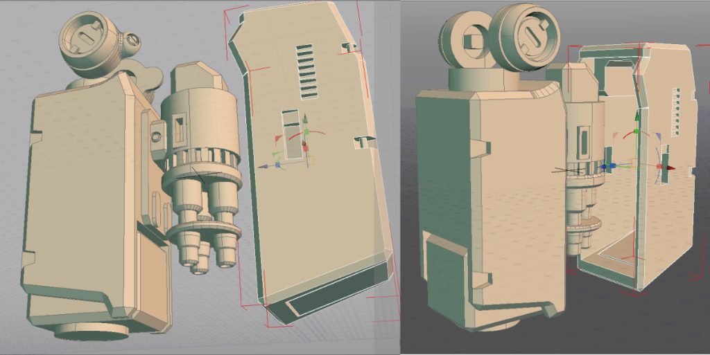 ・全体の長さ削減:カバーのみ全長削減。砲機構部延長…隠しても仕方がないので、もう一個の機構、腕スラスト回転による劇中射撃姿勢の再現(腕の上にガトリングを載せて肘を曲げたアレ)。肘を曲げる為には二重関節と下碗の捻り180度旋回+曲げストローク若干が必須なため。…かなりタイトだが、一応トライします。