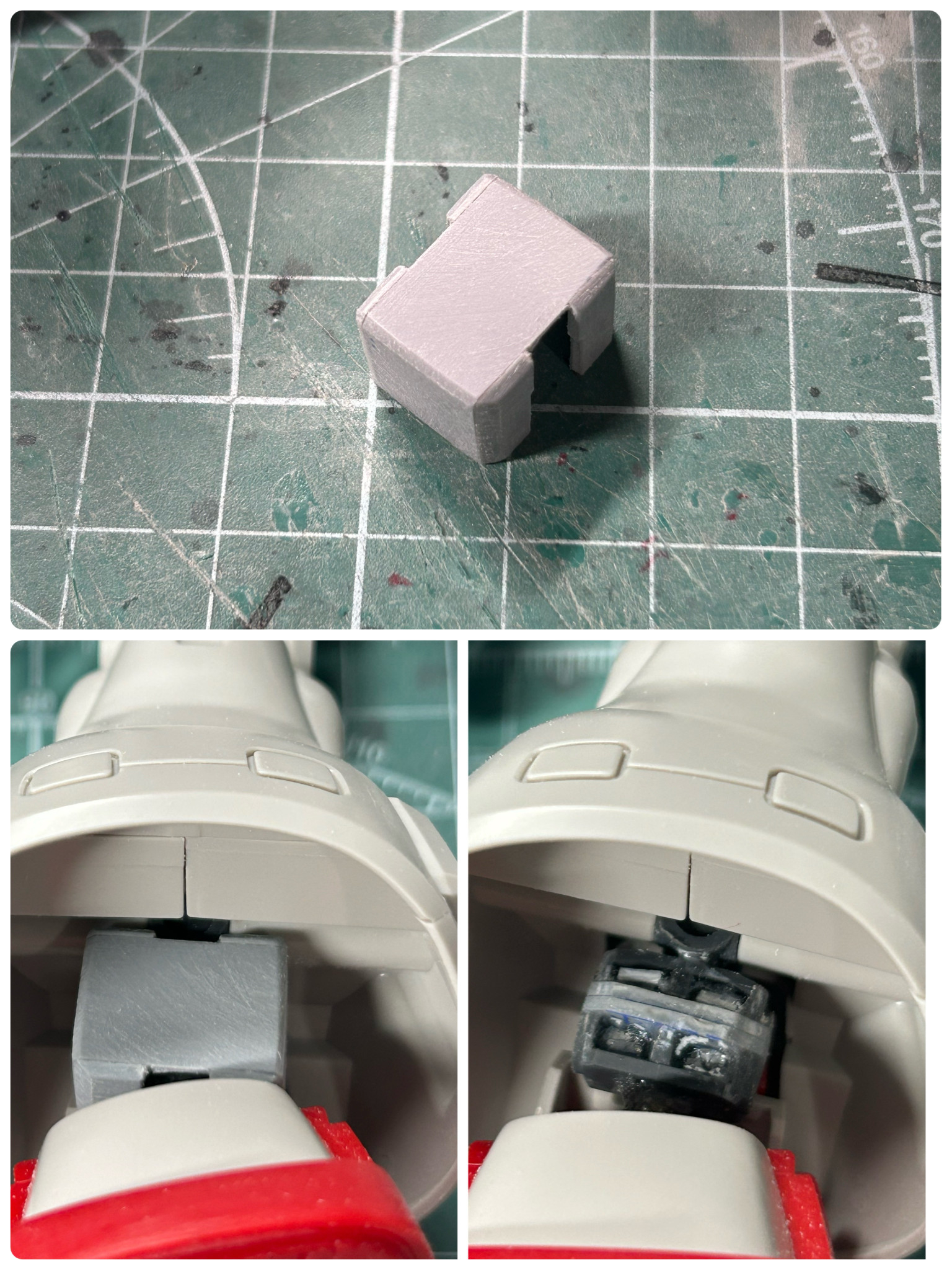超雑に足首延長していたため、後ろからガッツリ延長箇所が見えちゃっていたので、プラ板で簡易的なハメ込みパーツを作りました。ディテールなんかは後で足してそれっぽく仕上げるつもりです。
