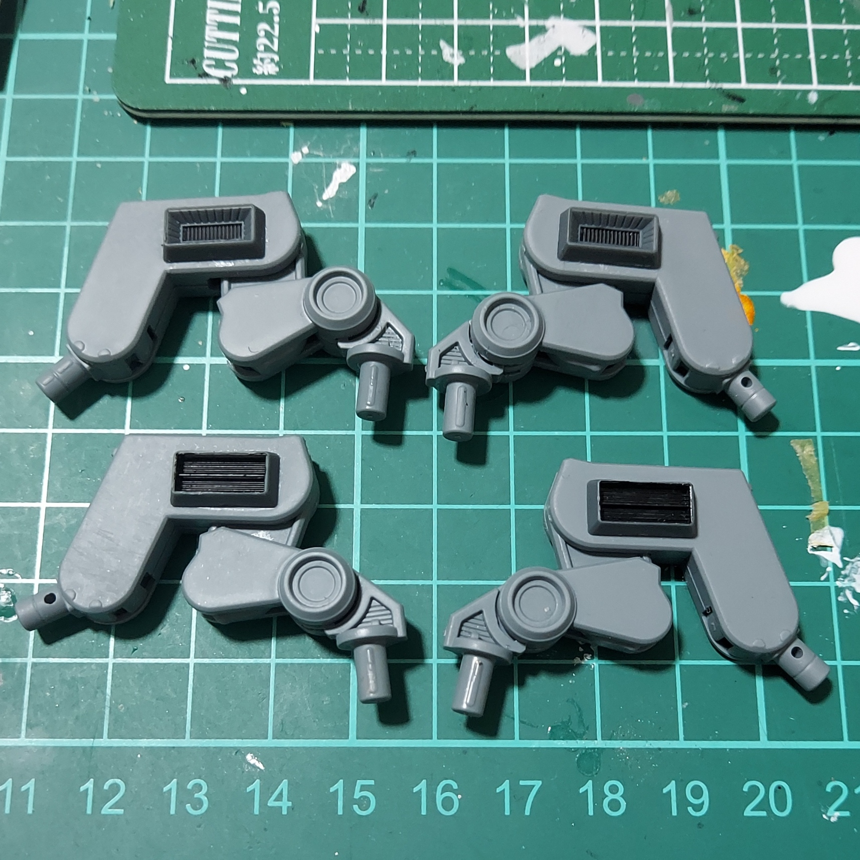 また、バインダーの支持アームにディテールを追加。バックパックと同じウェーブのU・バーニア【角】Mを使用しています。