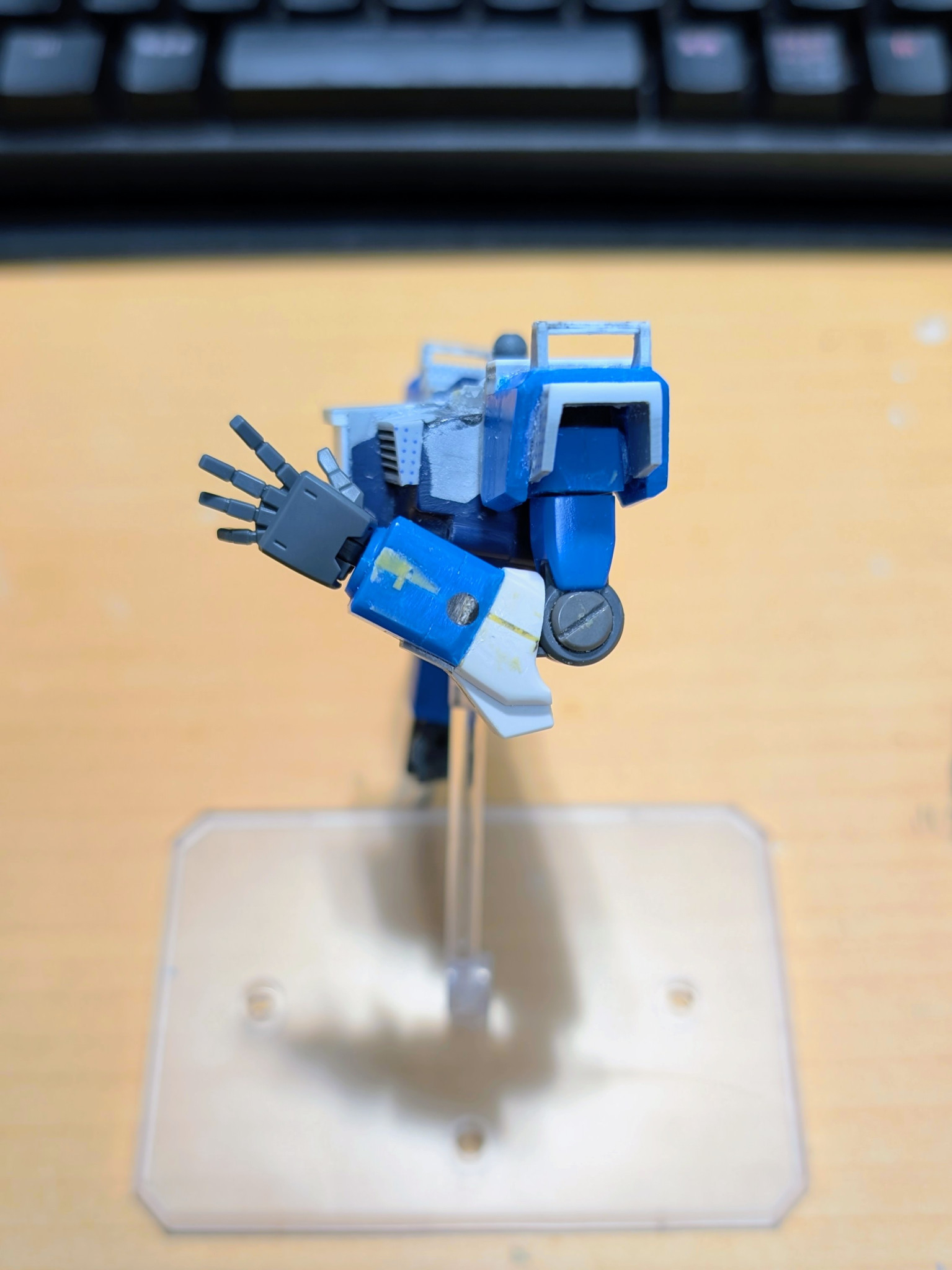 肩にブルーディスティニーに付いている、スポイラー?ウィング?みたいな装飾だったり、肘関節をダブルオーのものに変えました。