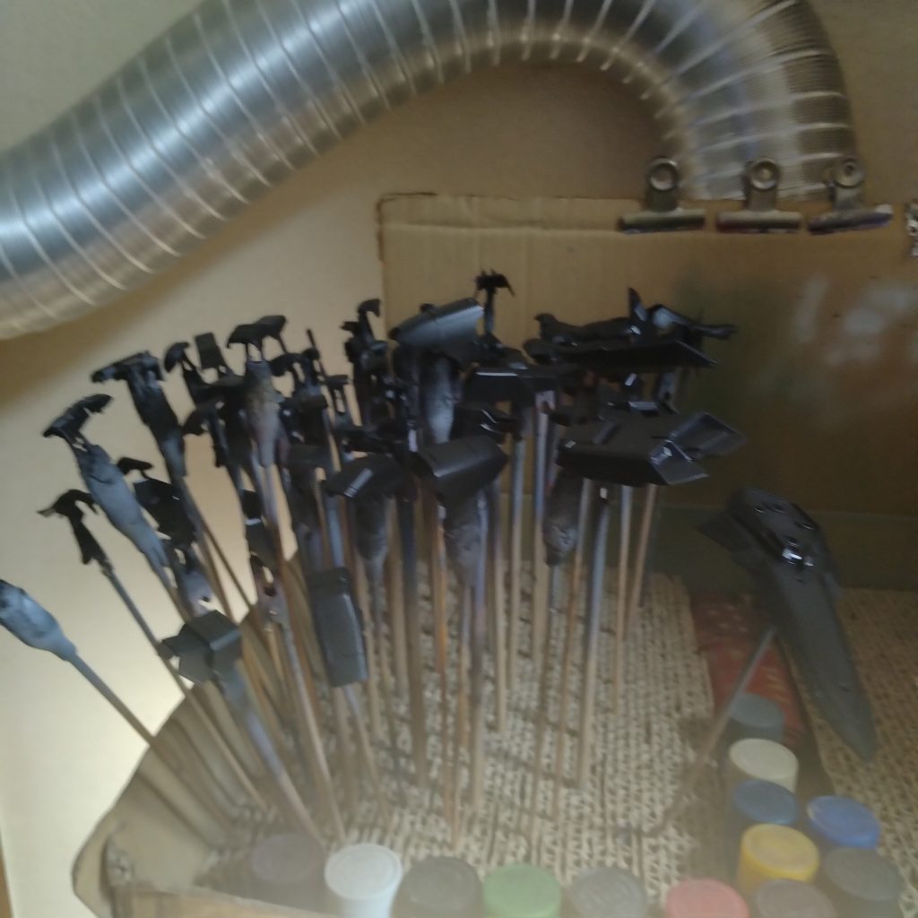 取り敢えず!やると言った以上は、とにかく動けと思って😄基本外装のサフ吹かしました!😀長年やって来てながら今更、始めて一発目からブラックサフを使いました!😄なんか感覚としてはエナメルブラックを吹かしてる感触ですね!😄まぁこれで、いつもの塗装より一層だけ塗膜が薄くなると言う事ですね!でもずっと最初はサフライト吹かしてから全ての塗装を始めて来たので!物足りなく感じますが!😅慣れが必要なんですね!😀ついつい遅くなってるのは!マジで寝てました!😄😄ここからがグラデーションなので!ちょっと集中力がいるので、ヤル気が出たらいっきにやりますが!ちょいまだ体がダルいので!タイミング待ちます!😄