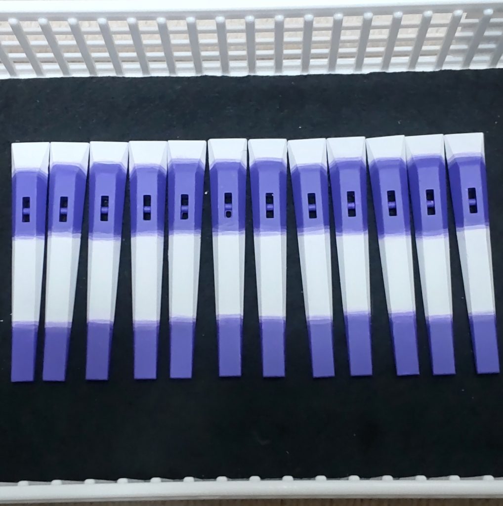 最初薄め液の濃さでチャレンジしましたが失敗😵💧。ネットで調べてパープルを4色(写真2枚目)ほどで境目を塗っててみたんですがムズいと言うか私の腕では無理😱。