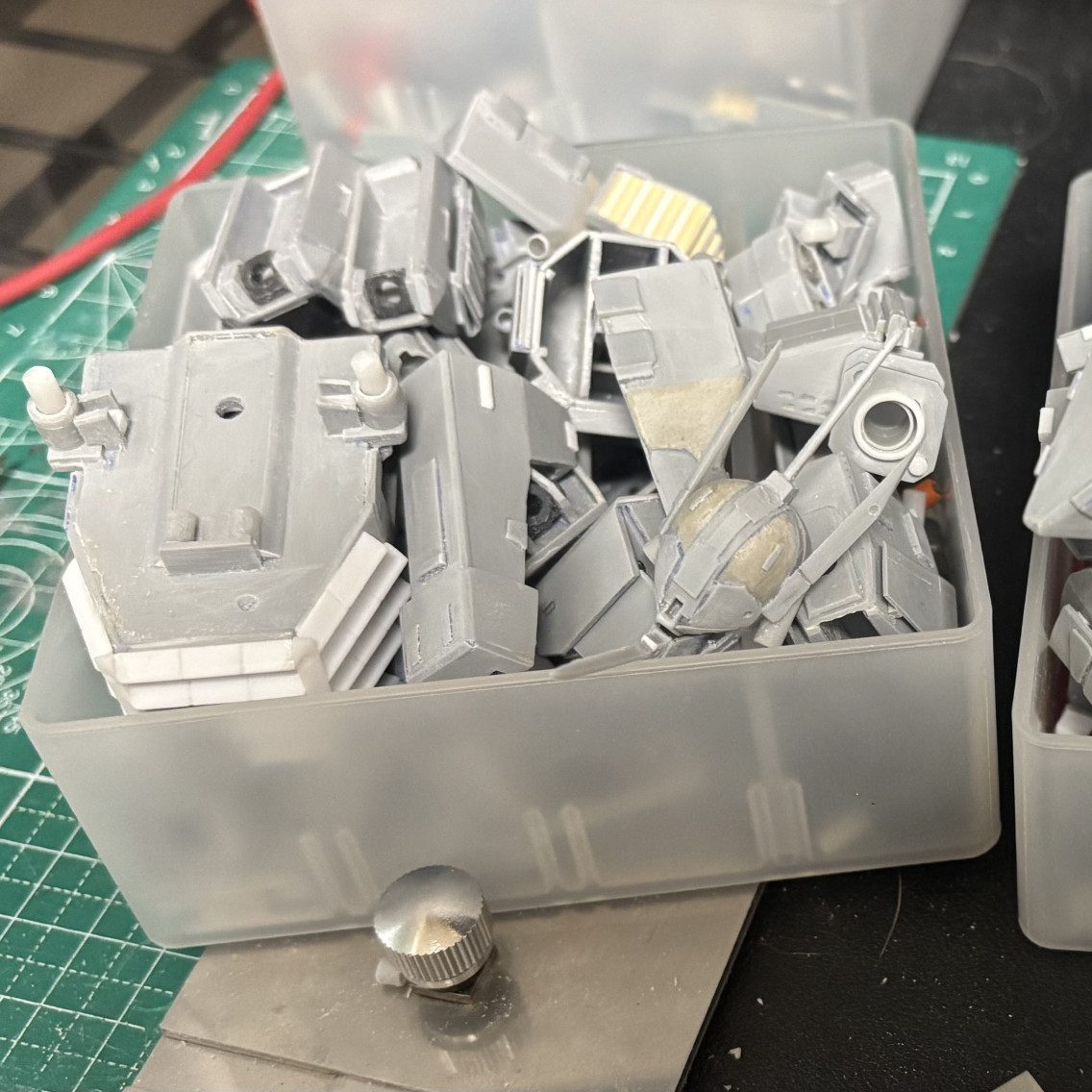 ますらお 2026.03/15更新 任務…完了2「陸戦型ハンマ・ハンマ(フルスクラッチ)」制作中 32 24 いいねしたモデラー(24) 6 作品を共有 出張前でバタバタでなかなか進みませんでしたが、表面処理と補正完了。400-600-800番で撫でておきました。来週出張でほぼ潰れるので、洗浄だけして長時間乾燥になりそうです。 今月中に作り切れるか…(zaku-kao9) 制作中 コメント コメントをして応援しよう コメントにはログインが必要です Ojipop 23時間前 この量、元に戻るのが驚異😱 ますらお 22時間前 とりあえず串打ちしましたが、全然足らんすね(zaku-kao4) inagu 51 1日前 物凄いパーツの量ですね😸 武器類が殆どだと思われますが、私には元に戻す事が出来ないと思われます😂 どんなカラースキームになるか楽しみです😆 ますらお 1日前 吹けば飛ぶようなパーツもあるので洗浄して乾燥中になくならないか不安です(zaku-kao4)今回は塗装もやってなかったこと試したいです! Mame-Ruri 1日前 プラ板だらけのグレーがサフ萌えに近いソレを感じさせますね(zaku-kao5) ますらお 1日前 ほぼサフ画でしたねスクラッチ完了時(zaku-kao2)ということは傷わかりづらくないか不安ですw ますらお 未熟者ですがよろしくお願い申し上げます。 地球の重力に魂を縛られた中年。地上戦兵器を作り倒したい。 引き算のデザイン?…戦いはボリュームだよ兄貴ィ! 基本すぐ何かしらスクラッチをしないと気が済まない性分…基礎工作、塗装技術を鍛錬中。 ますらおさんがお薦めする作品 ガンタンク現地開発機(モノサロス) HGUC ドワッジ(HGUCドム改修) デザート・ザク キャノンカスタム 陸戦型ゲルググ(HGUC改修) 9 重力圏海兵隊仕様 マラサイ 連邦という組織内でティターンズとは派閥を隔てた上層部もいたの… 8 陸戦型ガルスJ 塗装が台風被ったせいか湿度でノリが悪く苦戦しまくりましたが、… 9 陸戦型ジム 市街地戦仕様 塗装機材トラブルなどで途中で機材変えたりで少し塗装がうまくい… 8 デザート・ザク キャノンカスタム ピンク・パンサー隊のデザート・ザクをベースにカスタム機体を作… ますらおさんのページ この作品をお薦め作品に設定する Please login to update your profile! Please login to update your profile! Please login to update your profile! Please login to update your profile!