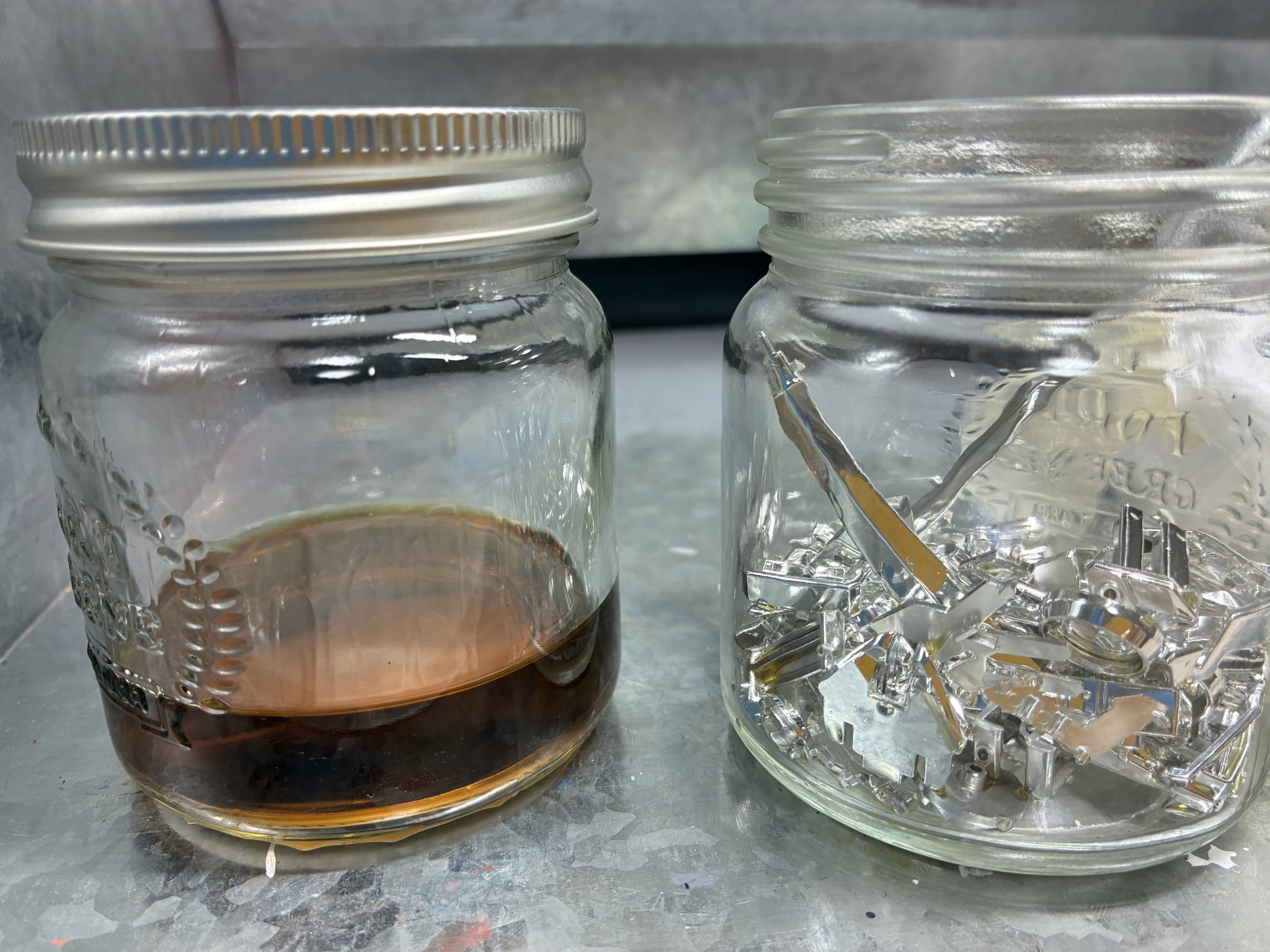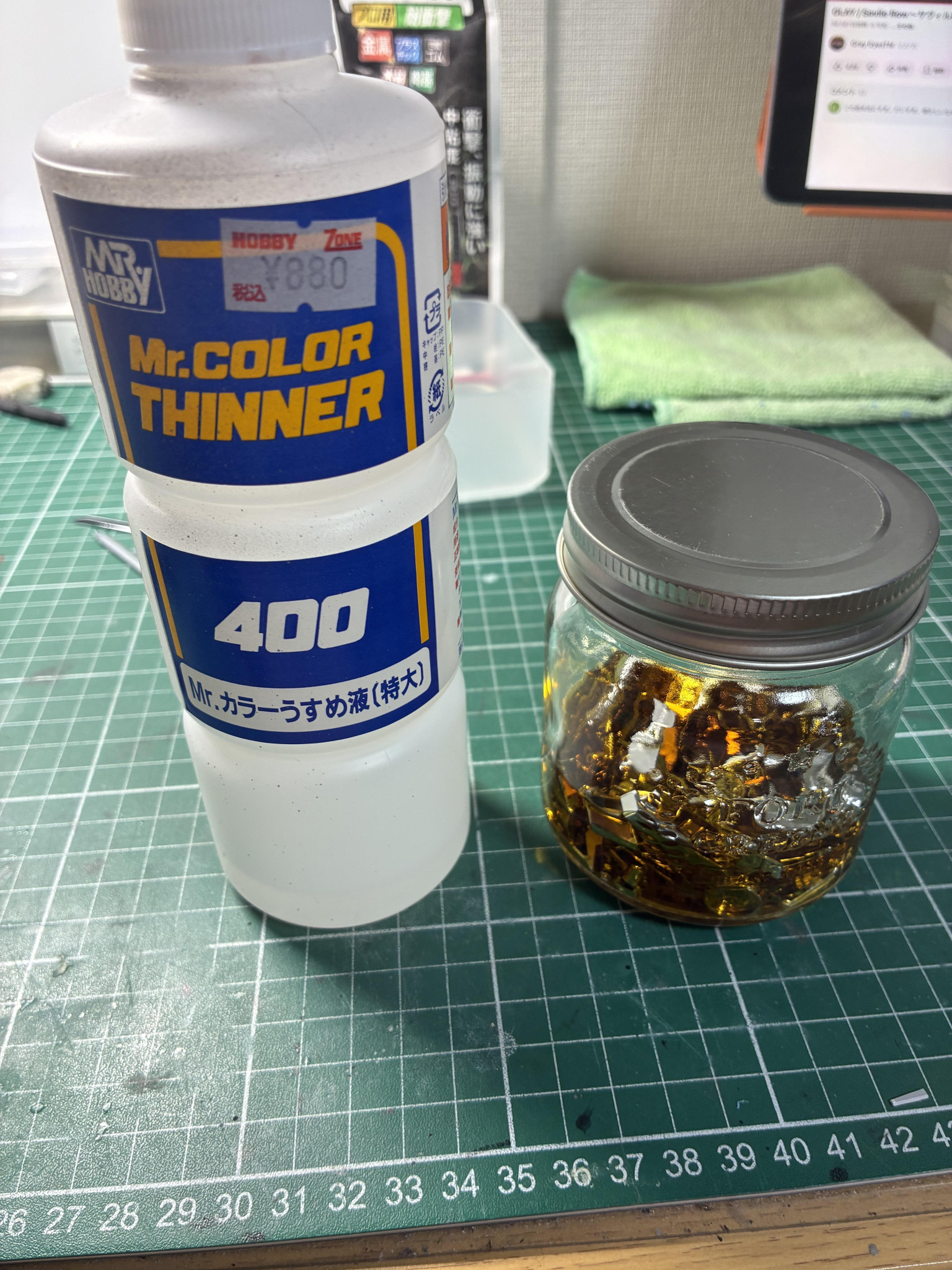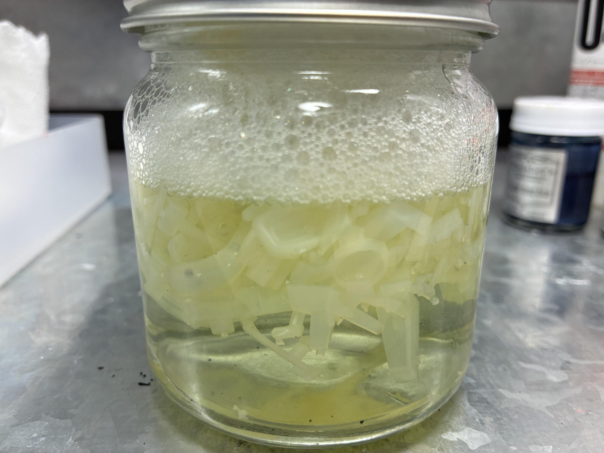 ・メッキではなくクリアイエローを剥がす作業なので、ランナーから落としたパーツを瓶に入れてシンナー風呂