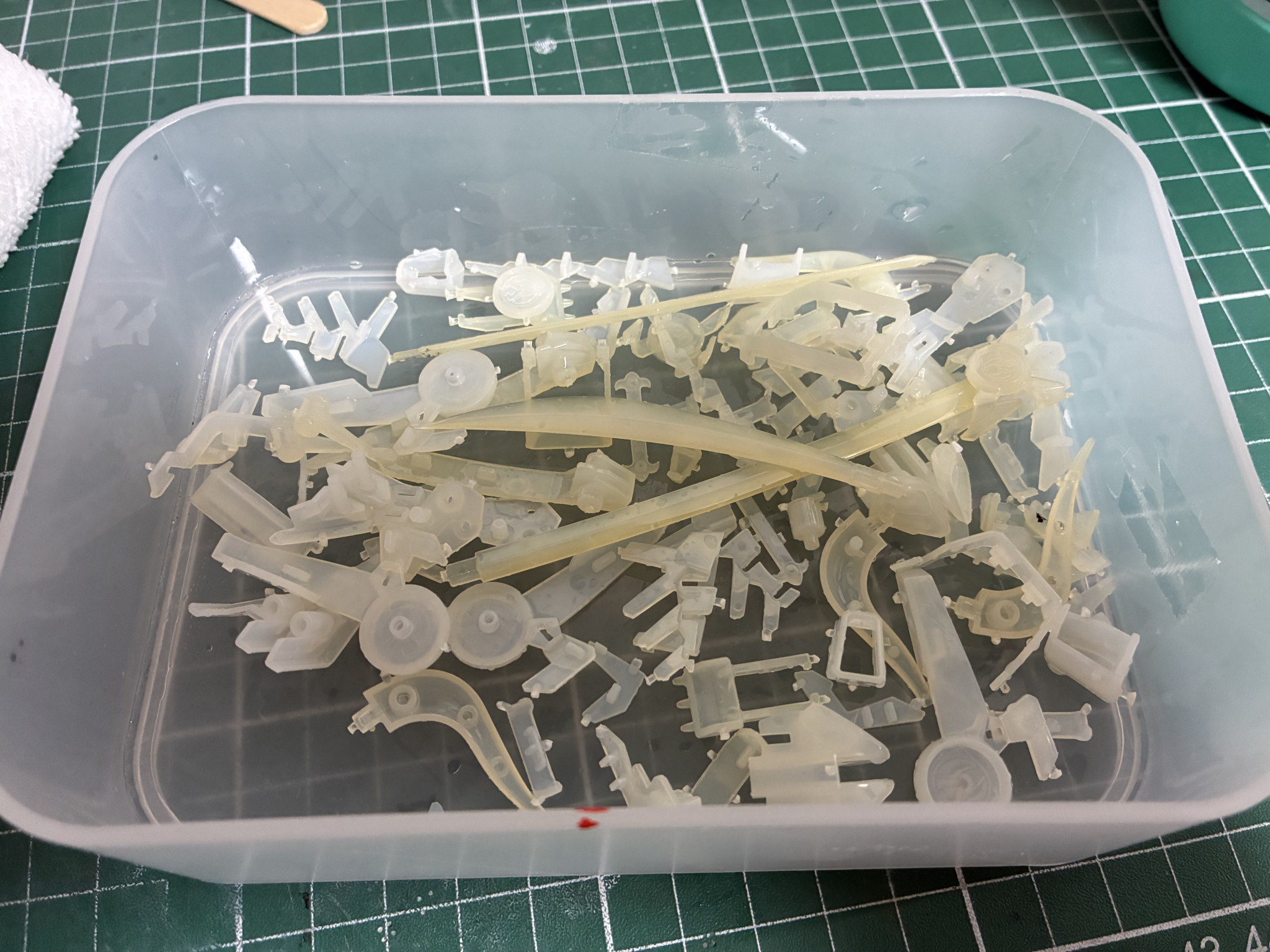 ・失敗したなと思ったのはハイターは泡立つので振りすぎ注意。泡で取り出しにくくなる上に今回のように乳白色のパーツは取り忘れがないか見分けにくい。正しく「漬ける」でいいと思った