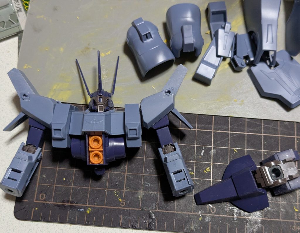 2026年 3月16日(月)。土曜日に、新しくオープンしたプラモ屋で購入したHGUC 1/144ドーベン·ウルフ(ユニコーンVer.)をヒケ処理等をしながら仮組み始める。