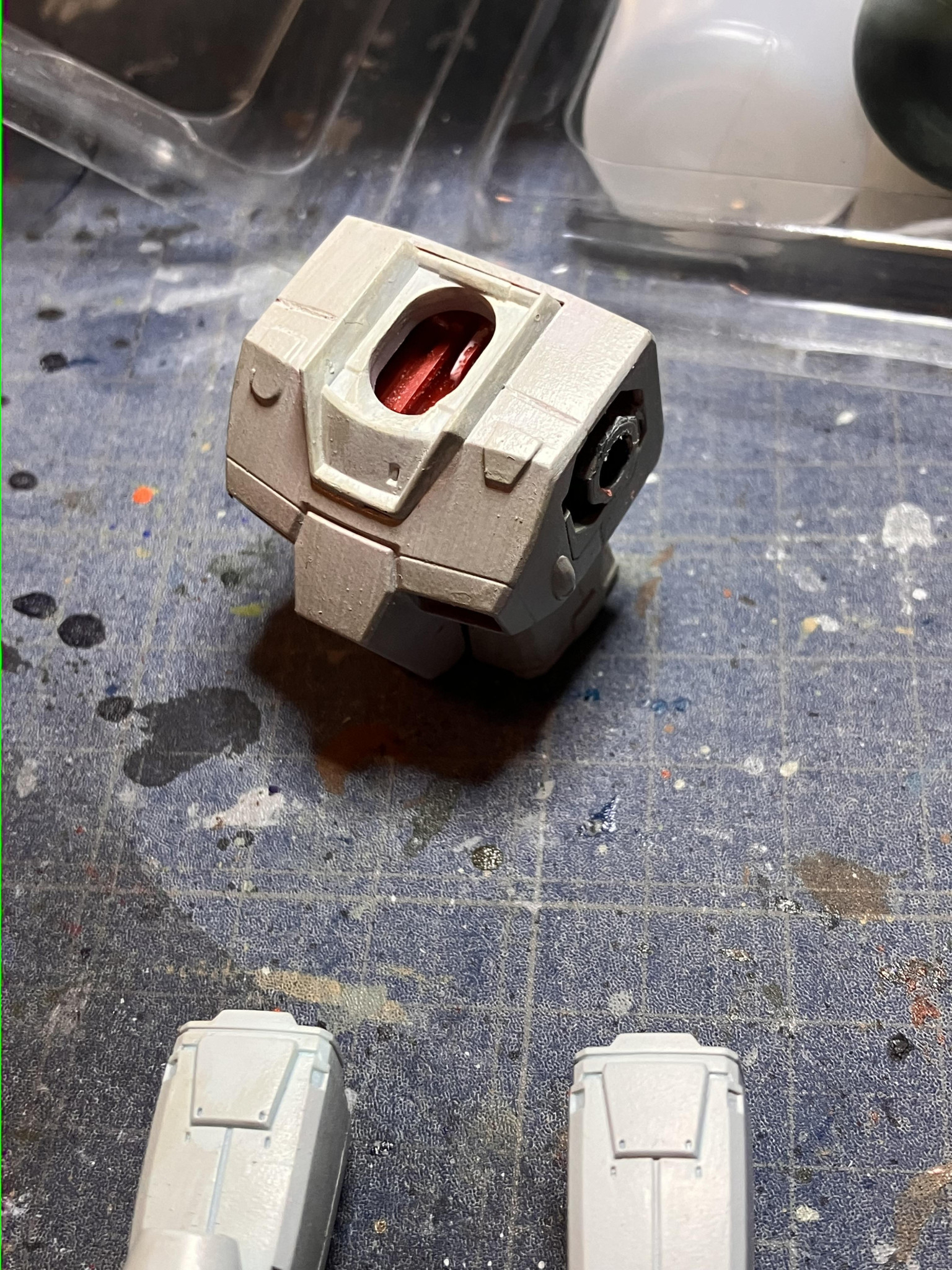 最近は下地塗りをしないで直塗りだったので写真で写すと胴体の赤が薄っすらと透けて見えますね