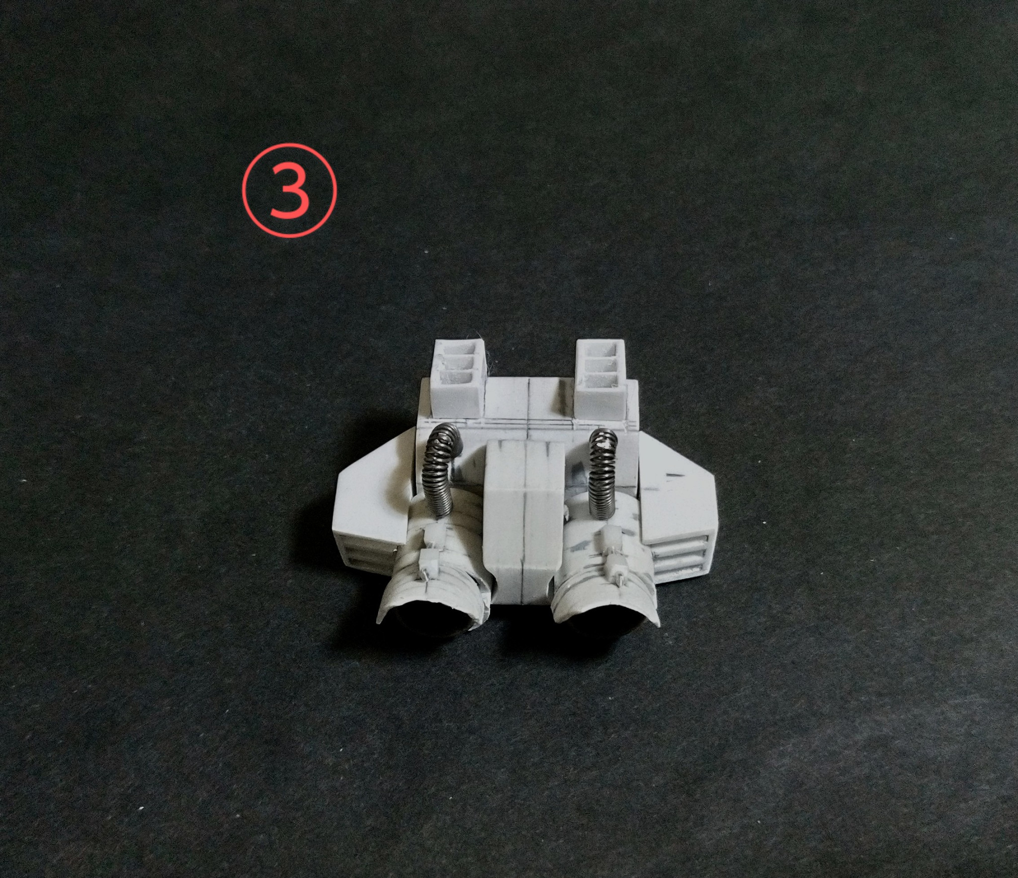 ②の画像でバーニアとスプリングを市販品のを使用。塗装の時に楽なように軸を付けて分割式にしました。