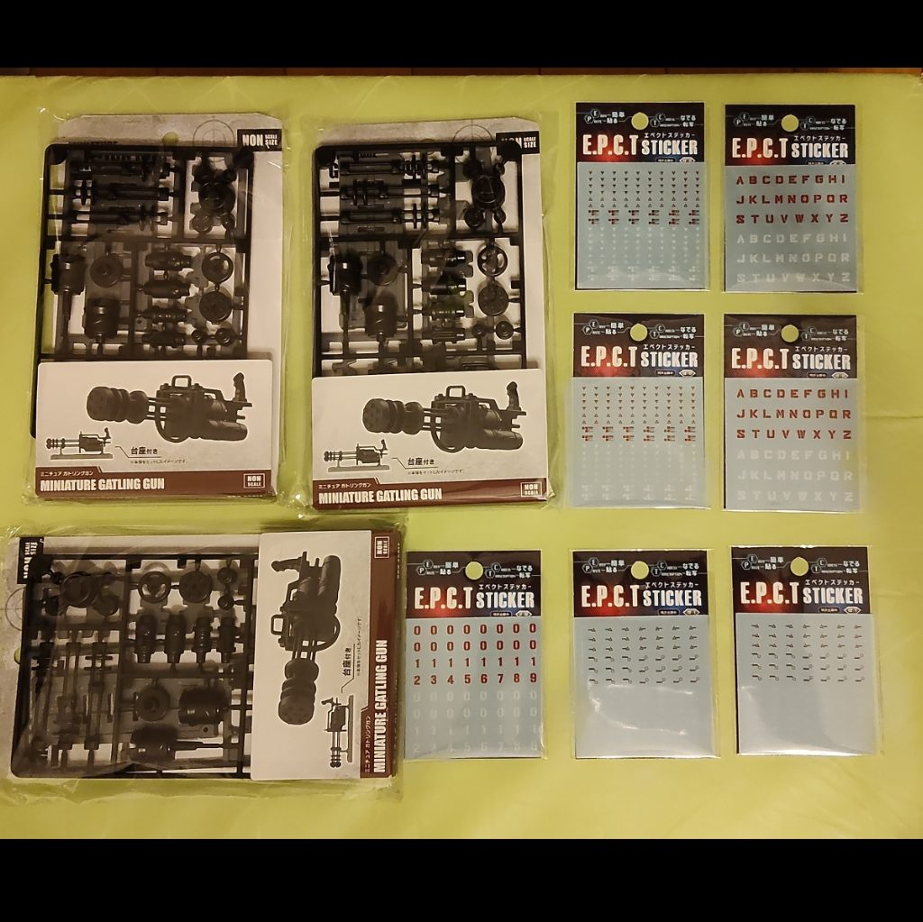 ガトリングも嬉しいですね。ただ砲身が細すぎてスカスカなのが弱々しいのでそこだけランナーちょん切って代用ですかね。でもアーティファクト改造のパーツ取りとしても色々使えそうで、ワクワク。台座も格納庫ジオラマの一部にできそうで、有能です。