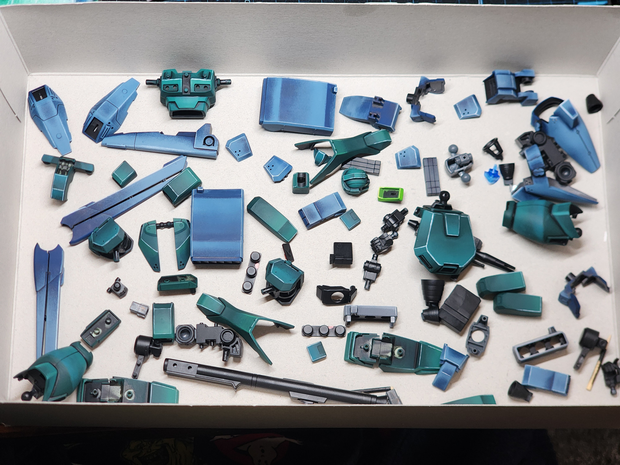 Thank you for the update on the painting stage, Octorden! Hearing that you repainted the torso three times until you were satisfied shows your incredible passion for achieving an “impressive” look. While you mentioned the color drifted toward turquoise, it looks like a very deep and beautiful shade in the photos. Choosing not to skip those tiny green parts was definitely the right call—it adds a fantastic level of detail to the overall piece. It’s great to see that your new workbench lamp has helped you “level up” your skills. You’re so close to the finish line—I’m rooting for you!