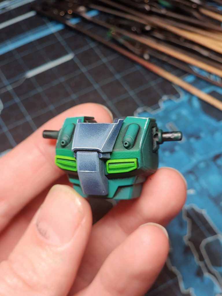 小さな鮮やかな緑色のパーツは、あまりにも小さかったので、ほとんど省略しようかと思ったのですが、結局塗ってよかったと思っています。全体の印象を良くしてくれるといいのですが。