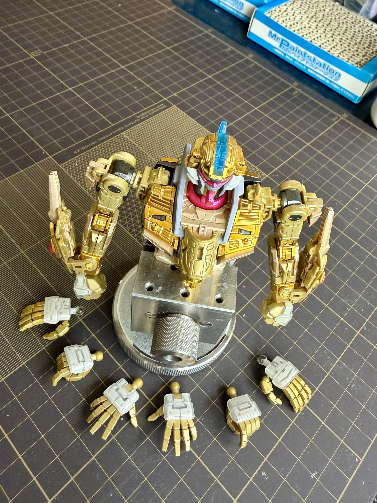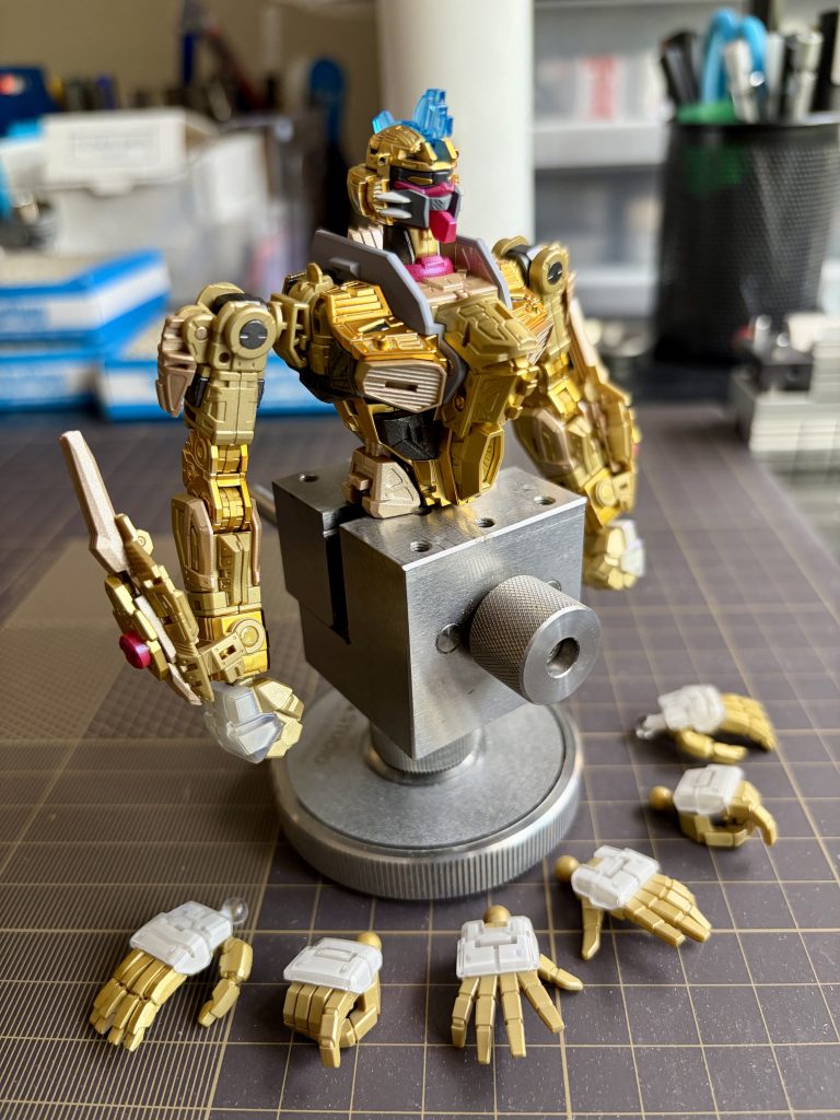 ここ二日は腕部の製作です。このエモーションマニピュレーター(全可動手)は、今まで作った中で一番忍耐力が試されるパーツでした…。最初はガチガチに硬いのに、動かしているうちに今度はポロリしやすくなってしまいます。次からは固定タイプの手首パーツを使おうかな、と思っています。
