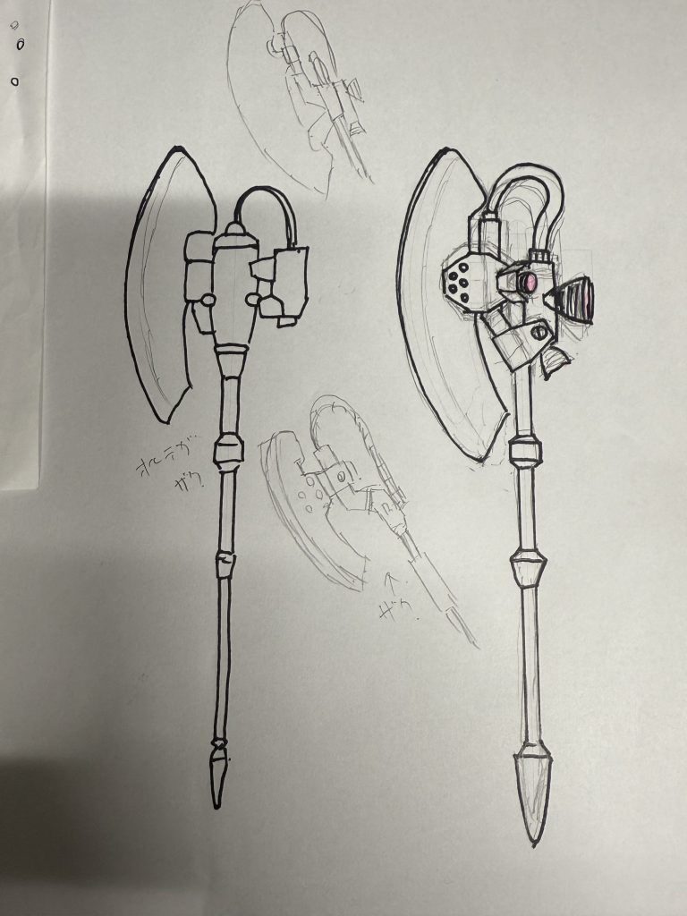 まあ、オリジン版の大斧はちょっと綺麗にまとまり過ぎてるなとは、感じているので(加速用のスラスターがパカって出てくるとか、、、)依頼者さんの言いたい事も分かるような気もするので、、