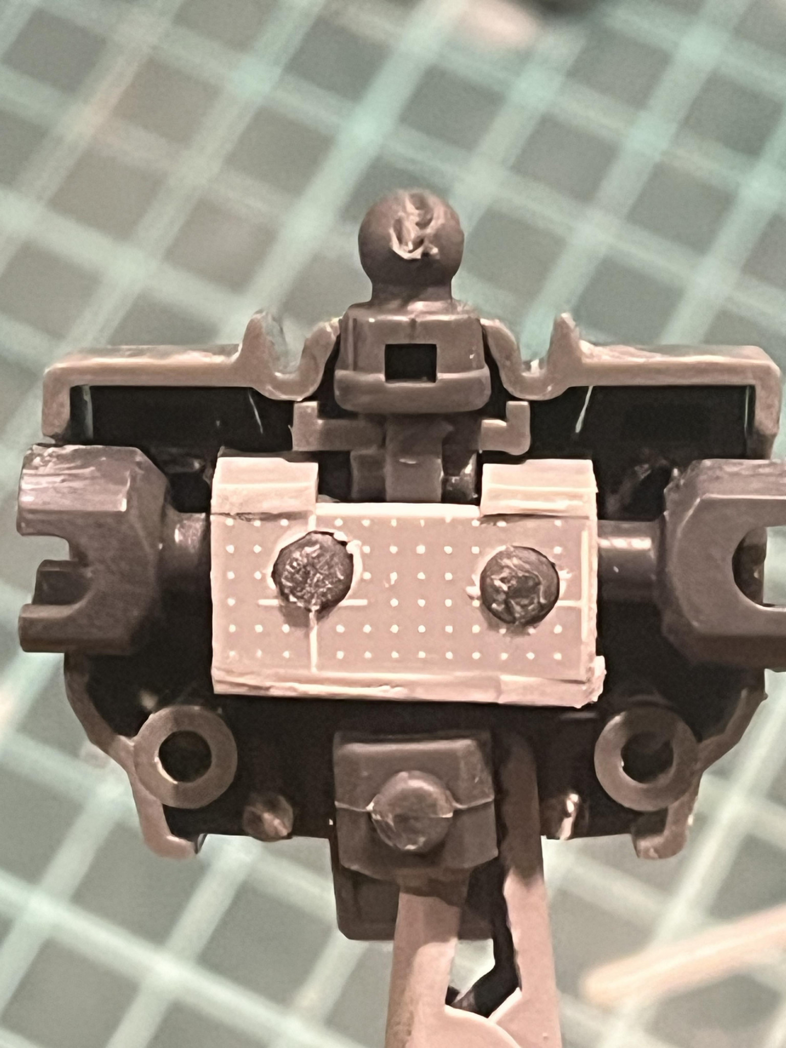 買ってて良かったボールデンアームズのジョイントをプラ板と余ったポリキャップを組み合わせた胴体フレームと接続してます。併せて肩アーマーの接続も変更。