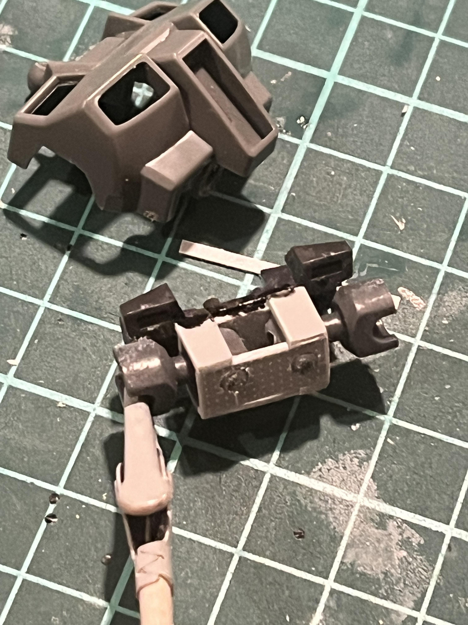 パテが固まるのを待つ間、思いついてしまったので肩関節の可動範囲改修をしました。