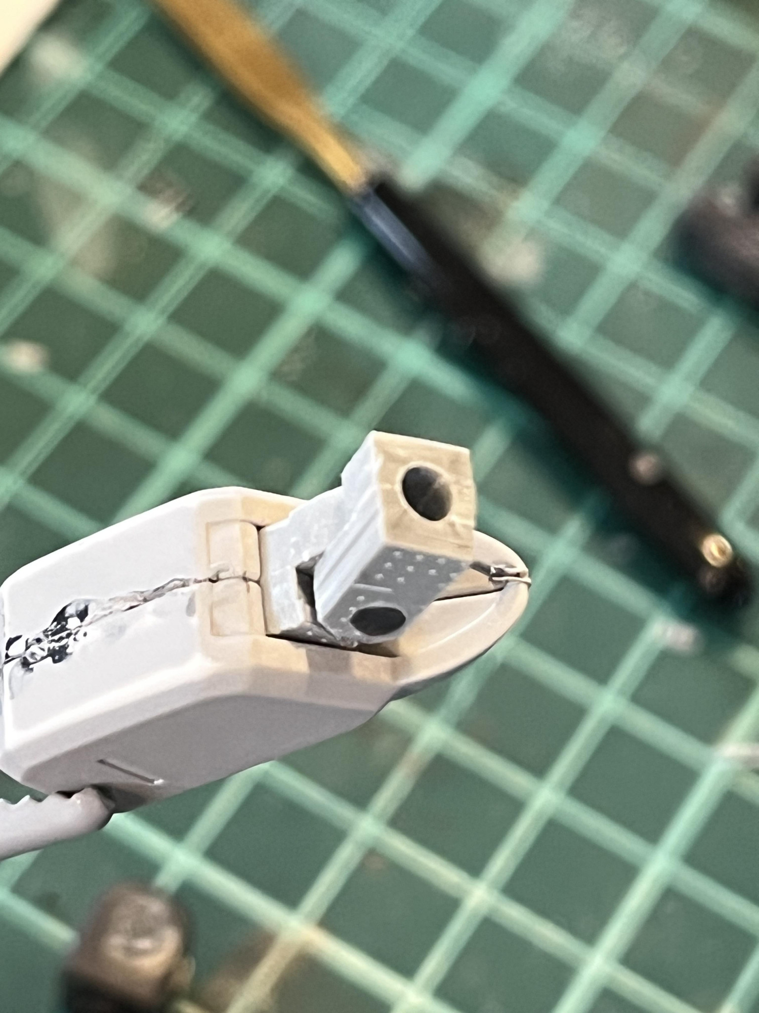 jacoyutor… 2026.04/04更新 肘関節新造「HG ジム寒冷地仕様」制作中 24 4 いいねしたモデラー(4) 0 作品を共有 前回のpostのあと、もっかいサフするかと思って分解したところ、3箇所くらいパキッといきましてね。 致命傷なのもあれば比較的軽症なのもあったんですが。もうげんなりですよ。 そのなかでも、ABS製の肘関節がなかなか外れなくて、やけくそでニッパーで挟んで力込めた結果パッキリなりましてね。 仕方ないので新造しました。 最初は両腕ぶん作るつもりだったんですが、ミリ単位の調整でプラ粉にまみれて心折れました。 もう片方は無事なんで、もういいかな・・・ 制作中 HGUC ジム寒冷地仕様 コメント コメントをして応援しよう コメントにはログインが必要です jacoyutorius 素組み、合わせ目消さずの部分改造と筆塗りが基本です。 小学校の頃からホビージャパンを愛読していましたが20歳くらいで卒業。ガンプラ界隈の動向は追ってたものの手は全く動かせずでしたが、20年ぶりに再開しました。 俺の宇宙世紀じゃMSに合わせ目はあるんだよ! 10 HGUC RGM-79BD B.D.ジム ブルーディスティニー1号機を普通のジムっぽく作りました。 R… 12 HG GQギャン コロニー内仕様 エグザベギャンを作りました。 公式デザインをはじめて見たとき… 9 HG 次世代機体仕様評価用GM ペイルライダーをベースにいくつかミキシングした機体です。 素… 9 HG ガンダムサバーニャ GNスプリッター迷彩試験仕様 HGガンダムサバーニャ(最終決戦仕様) の一部塗… jacoyutor…さんのページ この作品をお薦め作品に設定する Please login to update your profile! Please login to update your profile! Please login to update your profile! Please login to update your profile!