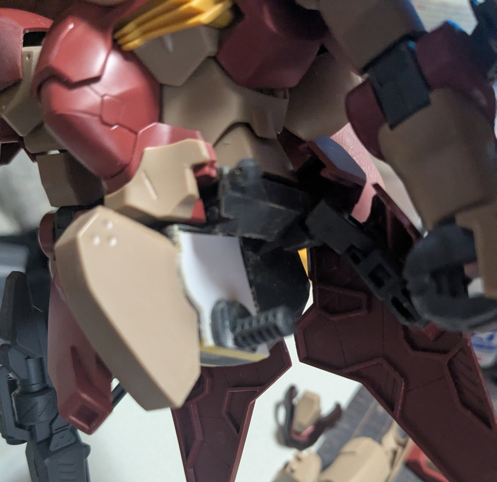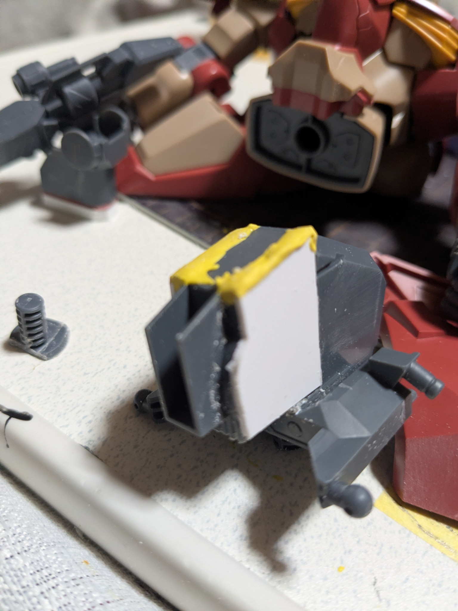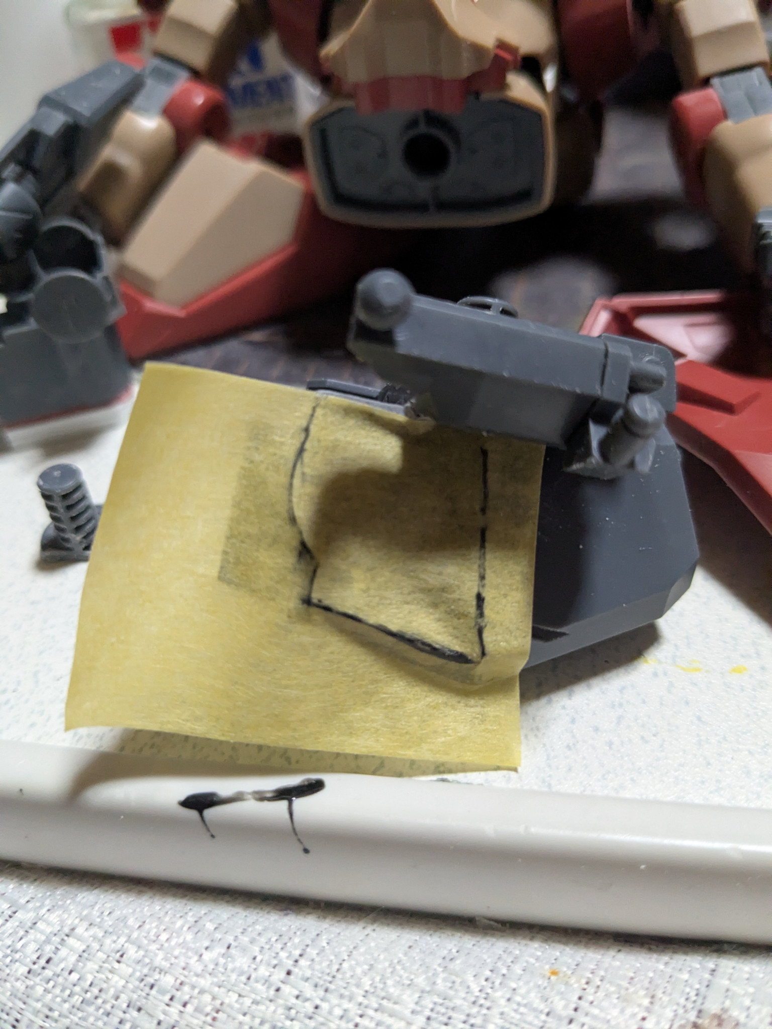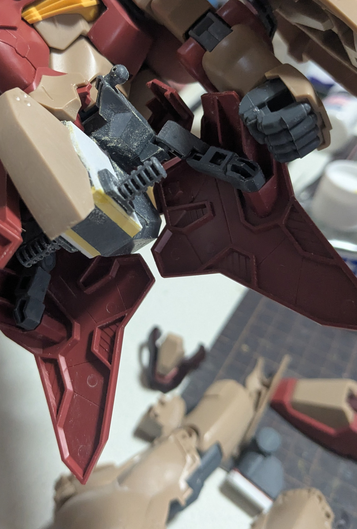 私生活が、極貧の翔… 2026.04/05更新 16 15 いいねしたモデラー(15) 0 作品を共有 太ももを切ってプラ板を挟んで、削るのが面倒くさいから簡単に脚を延長出来ないなぁ〜?と行き着いたのが、股軸を下げるだった。 D2の39番とD2の32番の股軸を画像の様に、約1.5ミリ幅詰め左右合わせて約3ミリ幅詰めした。空いた穴をマスキングテープで、形を取り、それを1ミリのプラ板で形を作って穴を塞ぐ。隙間をポリパテで埋めた。 股を左右合わせて、約8ミリ以上幅詰めをした。 後、足首を延長した事で見た目も良くなったかなぁ〜? 制作中 機動戦士ガンダム閃光のハサウェイ メッサー メッサーF01型 極貧の翔姫 隻眼のモデラー 改修 延長工作 コメント コメントをして応援しよう コメントにはログインが必要です 私生活が、極貧の翔姫 数年前の交通事故により左目が見えないガンプラ集取するのと、作ってみたいなぁ〜と言う気持ちが、出たらガンプラを制作するガンプラが好きなオタクです。よくガンプラ制作中に、左指を怪我します。『ガンプラアカデミー ワンダースクール』最近は『ビルダーズノート』に、良く投稿しています。交通事故で、入院中ここのサイトの事をしり、皆様の色々なアイデアや制作技術やらを学ばせて頂いています。 私生活が、極貧の翔姫さんがお薦めする作品 MG RX-78TB-2〔SB〕ガンダムストームブリンガー… 4 先週新しくオープンしたプラモ屋で、飾ってもらいました。 先週新しくオープンしたプラモ屋で、飾ってもらいました。 帰り… 13 HGUC 1/144 シルヴァ・バレット 『Ver. 私生… 現在。ホビーゾーンにて、展示中です。展示期間は、2026年 … 11 HGUC リヴァイブ ガンキャノン (ア・バオア・クー最終決… YouTubeで、こた☆プラ夢工作さんの製作したガンキャノン… 8 HG 1/144 ガンダムザガン 『Ver.私生活が、極貧の… 2025年 12月9日(金)から制作開始して、26日(金)午… 私生活が、極貧の翔…さんのページ この作品をお薦め作品に設定する Please login to update your profile! Please login to update your profile! Please login to update your profile! Please login to update your profile!