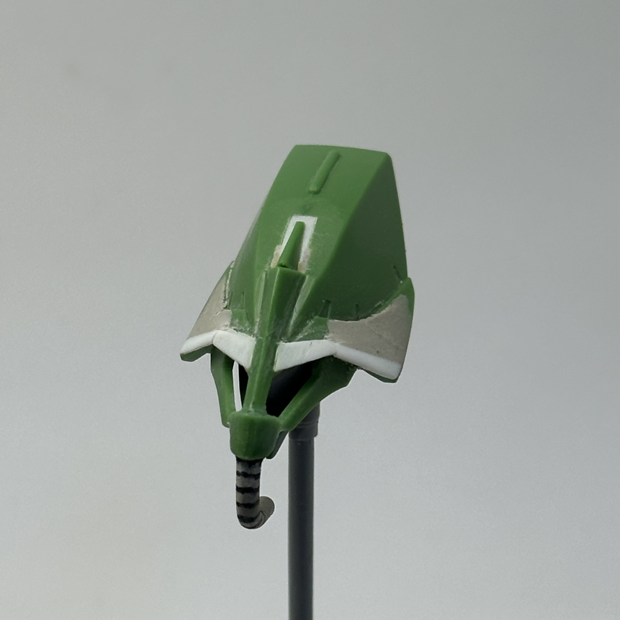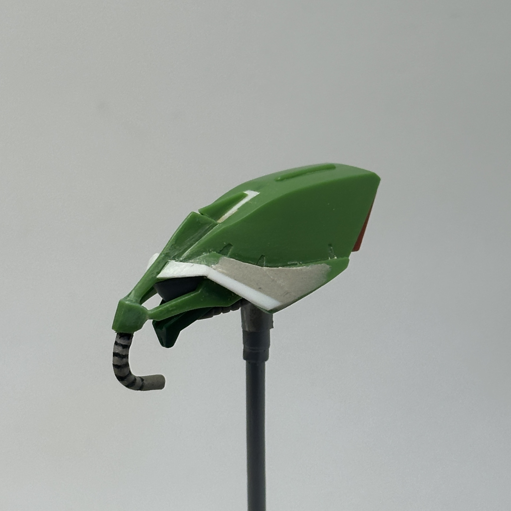 頭部は、アニメ版のガルスK設定画に寄せるために、クチバシの短縮、トサカアンテナカット、動力パイプの自作、ひさし部分をプラ板とエポパテで整形しました。