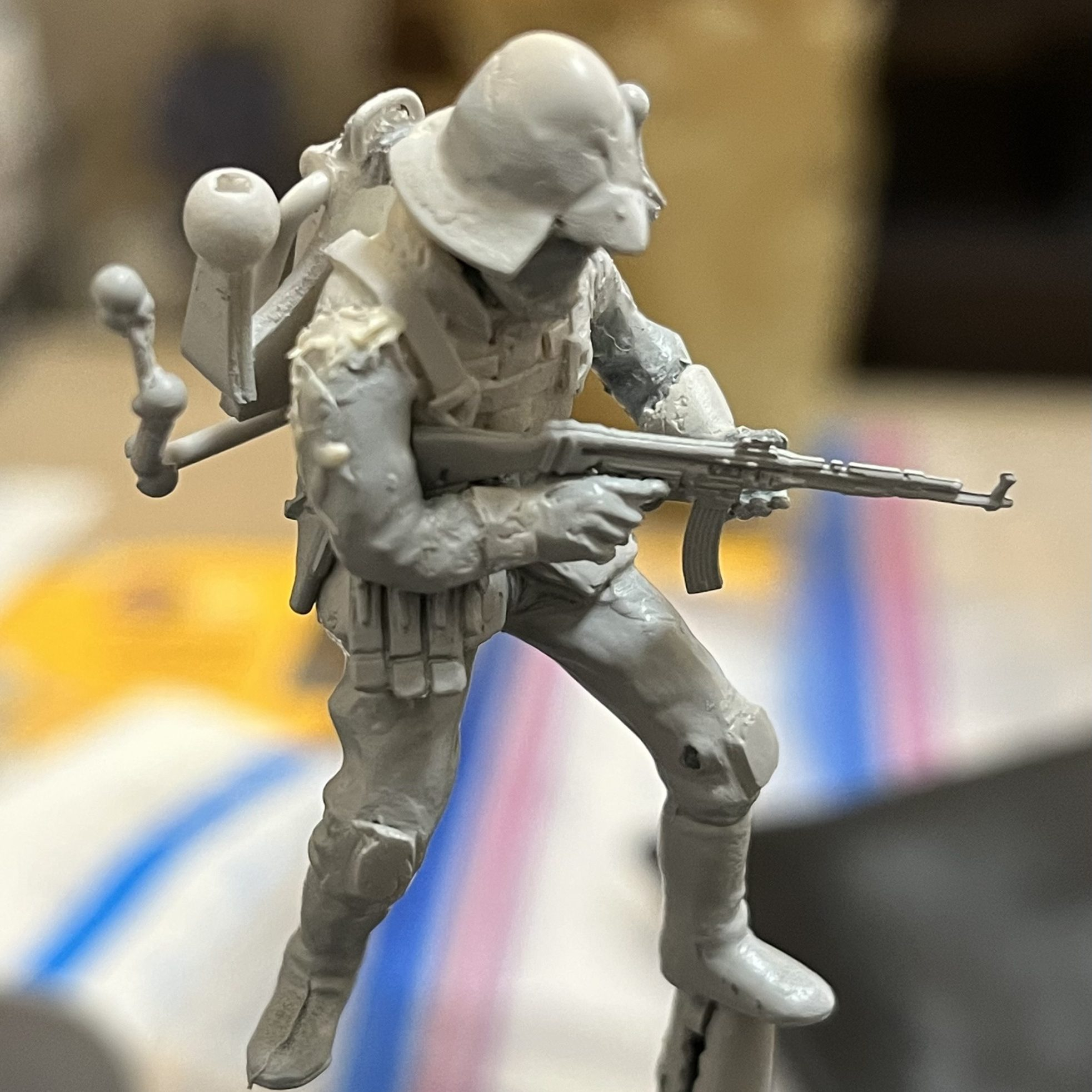 RaMuShizu 2026.04/09更新 《ジオラマ》ワッパとジオン版デルタフォース 24 19 いいねしたモデラー(19) 0 作品を共有 ジオン兵に何となく😅見えてきました。仮サフすると粗が目立ち、ペーパー掛け、削り出し、パテ盛りが必要な箇所がチラホラ。ドイツ軍のヘルメットなら何とかなるんじゃない?と思いきや…とんでもない。かなり手を加えないとダメです。ヘルメットのてっぺんは削り出して先端を尖らせないとダメです😭ドイツ兵のヘルメットのてっぺんはパテをかなり盛り付けてます。まだ1体目…あと3体この調子で作るのか…😅 制作中 コメント コメントをして応援しよう コメントにはログインが必要です RaMuShizu ガンダムは一年戦争以外はあまり知らないオッサンです。1年戦争以外のMSは殆ど知らないので話しについて行けない事もしばしば😅。1年戦争🪖をミリタリー的にあしらった物が見るのも作るのも好きです。ミキシングとやらはやった事もなくパテやプラ板を使った古風な改造しかできません。模活の年季は入ってますのでそれなりに見応えのある作品を心掛けて作って行きたいと思います。 17 「敗走」〜復讐のレクイエムより〜吉本模型部「第6回模コン」v… GUANSTAのモデラーさん達と今回もご一緒できて吉本模型部… 17 《ジオラマ》ドムトローペン「Private War」 《ジオラマ》ドムトローペンのタイトル…色々考えた挙句、これに… 17 ドムトローペン〜アーティファクト風/ドワッジ仕立て〜 アーティファクトのトローペンを参考にHGトローペンにドワッジ… 6 「BATTLE OF CALIFORNIA BASE」その後 前作のキャルフォルニア基地で連邦守備隊が壊滅した後の状況です… RaMuShizuさんのページ この作品をお薦め作品に設定する Please login to update your profile! Please login to update your profile! Please login to update your profile! Please login to update your profile!