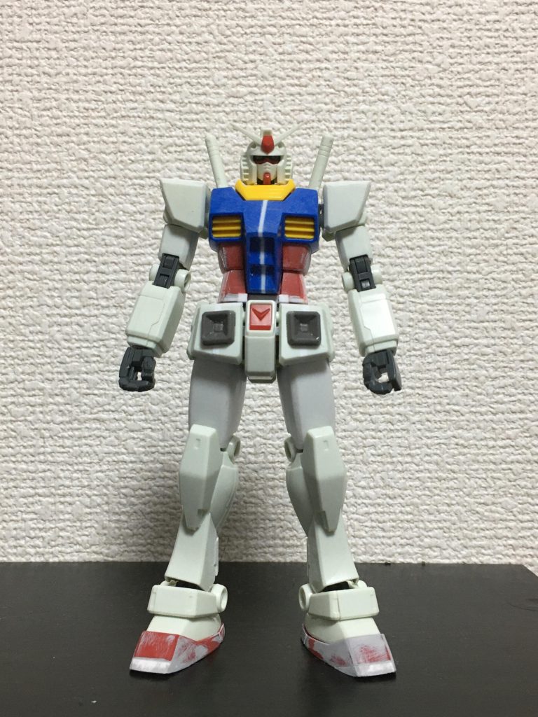 アオリ気味な正面 胴体と太ももおよそ2ミリ幅増し。赤い腹部は…