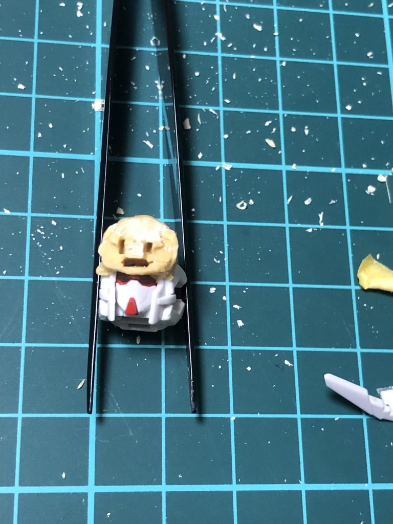 ついでにコアガンの胸元についていたクリアパーツをアンテナ部分に移植できるよう加工しました。怪我の功名。オリジナル感出てきたー!テンション上がる!後はこれを頭にうまく装着出来るか(^_^; 慎重にやろう。