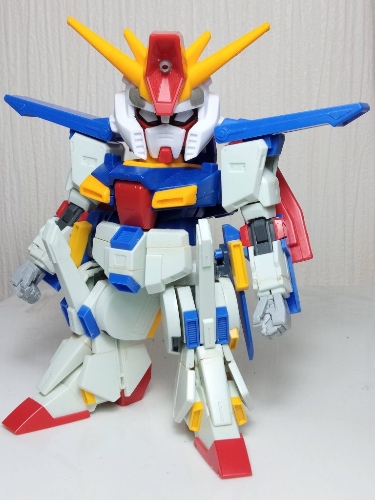 頭部はBB戦士ZZのヘルメットに、SDCSガンダムのフェイス+SDCS Zのツインアイ+BB戦士ZZのマスクというカオス状態。こめかみのバルカンは設定画には無いのでパテ埋めしています。