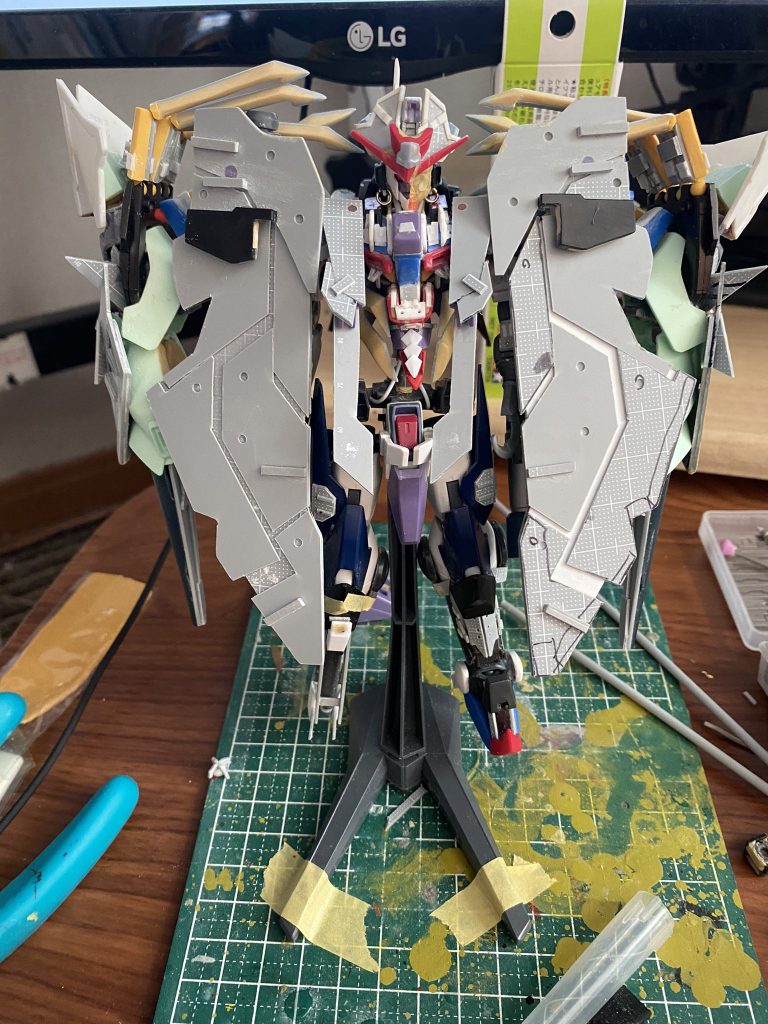 GUNLAB 2021.07/08更新 23 56 4 いいねしたモデラー(4) 0 作品を共有 海賊っぽさとダークっぽさを意識して、骨っぽいパーツ、それに沿わせた血管を連想させる動力パイプに結構時間がかかった。 全面に展開されるフルシールドは海賊の服を連想しやすい形にしようと考えていたものの思い通りにいかない感じに… 両サイドにマウントされているガンダムヘッドアームは手に装備することができるものの重すぎるため軽量化が難点になってくるかもしれない… GNドライヴ ガンダムビルドダイバーズ シールド ダブルオースカイ 制作中 大砲 宇宙海賊 機動戦士ガンダム00 海賊 骨 コメント コメントをして応援しよう コメントにはログインが必要です GUNLAB ガンプラ研究所「GUNLAB」原形をなくす改造は楽しい♪ 最新情報&進捗モロモロ↓ X:@Jiji_Tsubua 8 夢は一つあればいい 機体名 バリスティックハンター 武 装 ハンターライフル ア… 7 返り咲く光-まさしく愛だ- スサノオの撃破されてからの劇場版にいたるブレイブ指揮官仕様ま… 8 大正桜に浪漫の嵐? 新サクラ対戦に登場する「霊子戦闘機無限」を模したGN戦闘機無… 7 暗い記憶 ダークメモリア GUNLABさんのページ この作品をお薦め作品に設定する Please login to update your profile! Please login to update your profile! Please login to update your profile! Please login to update your profile!