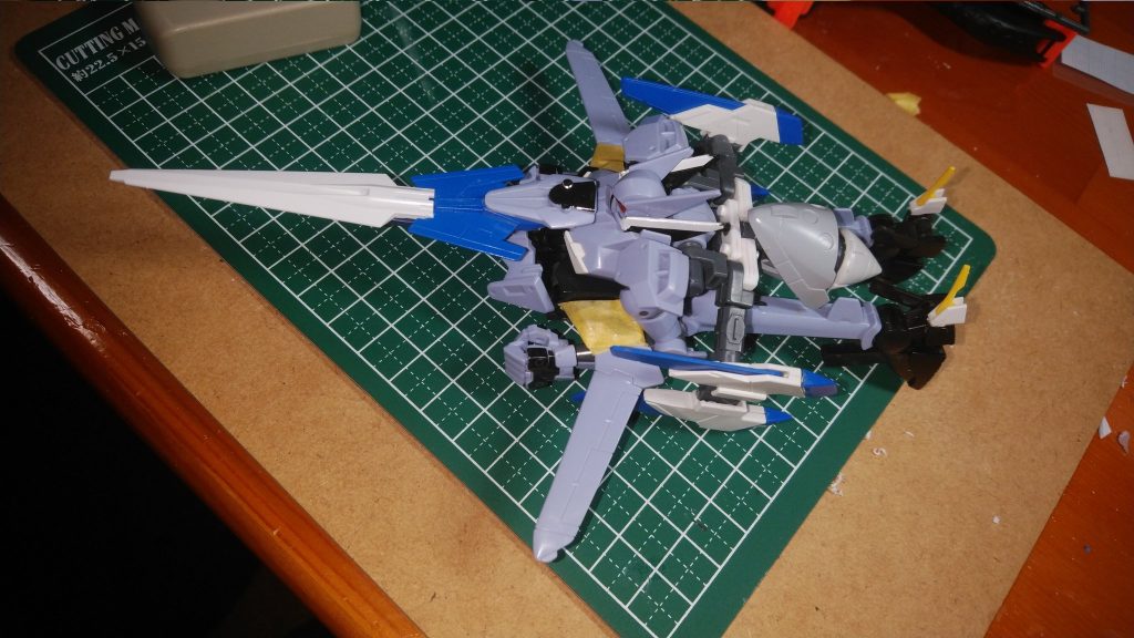 バックパックは本来主翼をスクラッチする予定が実際作ってみたらデカすぎてカッコ悪くなったので没に…。元々の予定だったオーライザーのクラビカルアンテナをくっつけたのと主翼を腰に移植して大まかな形になりました。たぶんこれからは大きく変わったりはしない…w