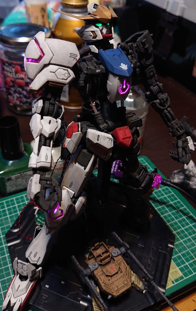 住居環境によりエアーブラシが使用出来ないため、完全塗装は出来ませんが、部分塗装、ハイキューパーツのLEDを使用したUSB給電・完全可動を確保した電飾、つや消し処理でのウェザリングにこだわって製作しています。