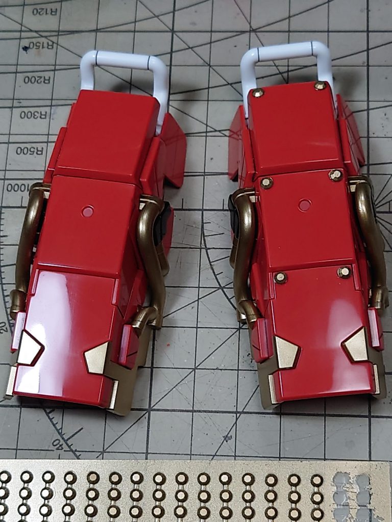 100均で以前に購入して、何かしら改造に使えるかとストックしていたステッカー。スタッズシールと言う商品名だけど、鋲(リベットとも言う?)みたいだからナイト系にでもと思ってたのですが、武者にピッタリではありませんか。もとから金色だったのですが、これもプラのチープさがあったので一緒に塗りました。シールだから後に剥がせますが、わりと強力な糊なので簡単には取れません。あとハンドを変更しました。こちらは数年からストックしていたモノで、ホビーベースの極め手です。今は販売していないのか、通販サイトで一万数千円となってました。ありえないですな(-_-;) このハンドは本来は、フリーポーズで自由に形を決めて接着固定するものです。遊ぶ用ではないですが、撮影用ぐらいなら頻繁に可動させることもないので、自分はフリーのまま使用してます。とても表情が豊かになるハンドです。