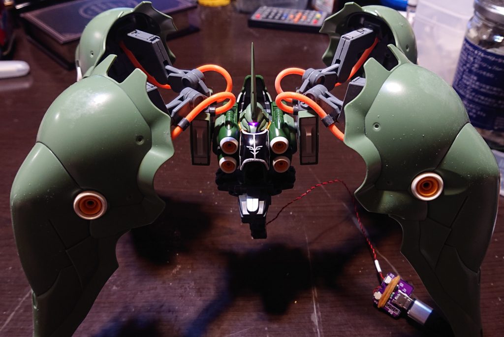 住居環境によりエアーブラシが使用出来ないため、完全塗装は出来ませんが、部分塗装、ハイキューパーツのLEDを使用したUSB給電・完全可動を確保した電飾、つや消し処理でのウェザリングにこだわって製作しています。